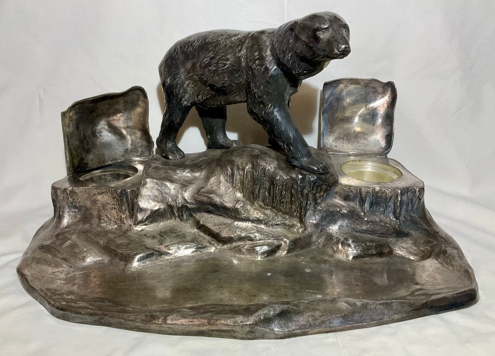 - Context: This piece belongs to the height of the Jugendstil movement. Figural animal inkstands like this polar bear were highly popular as both functional office tools and “sculptural” conversation pieces.