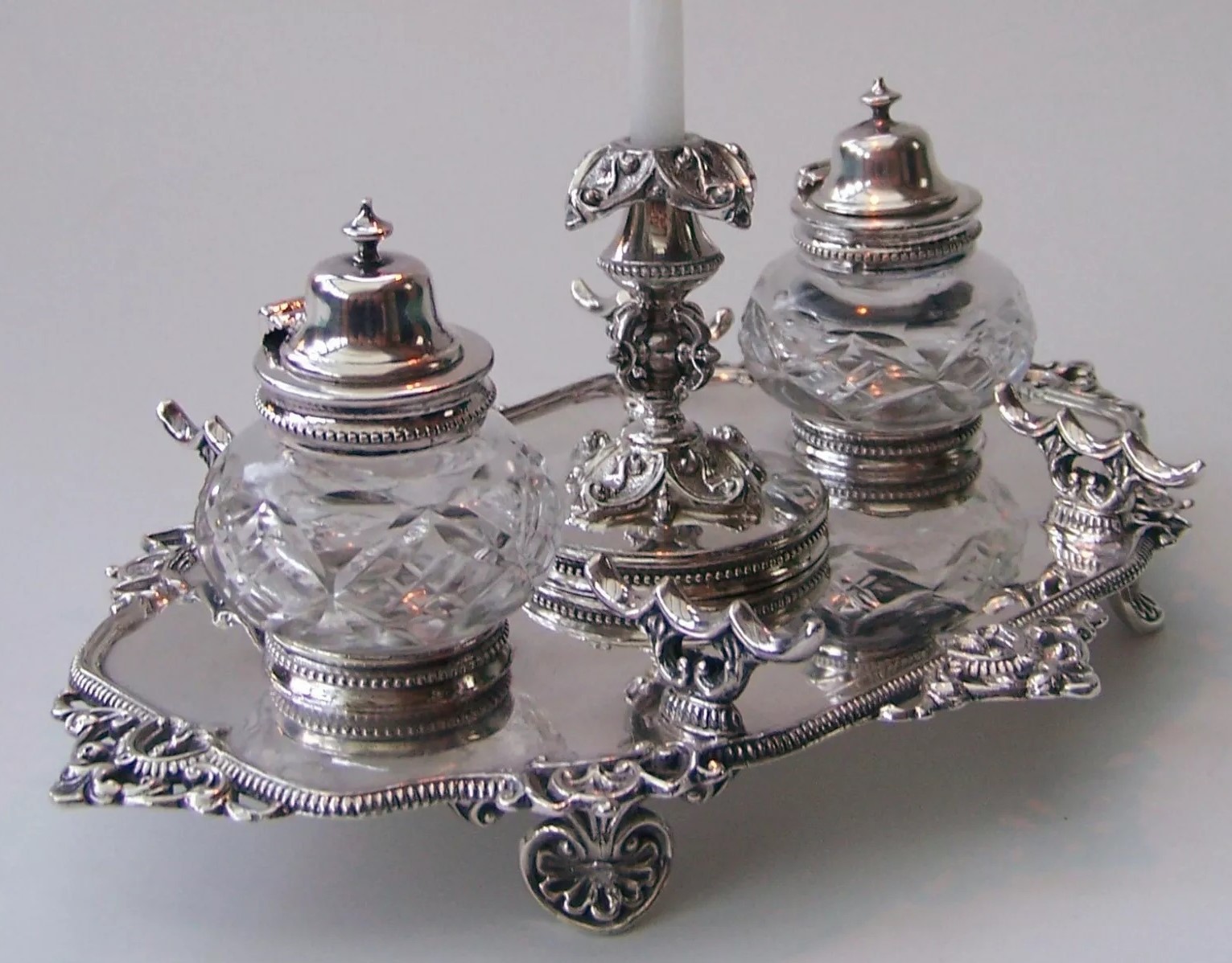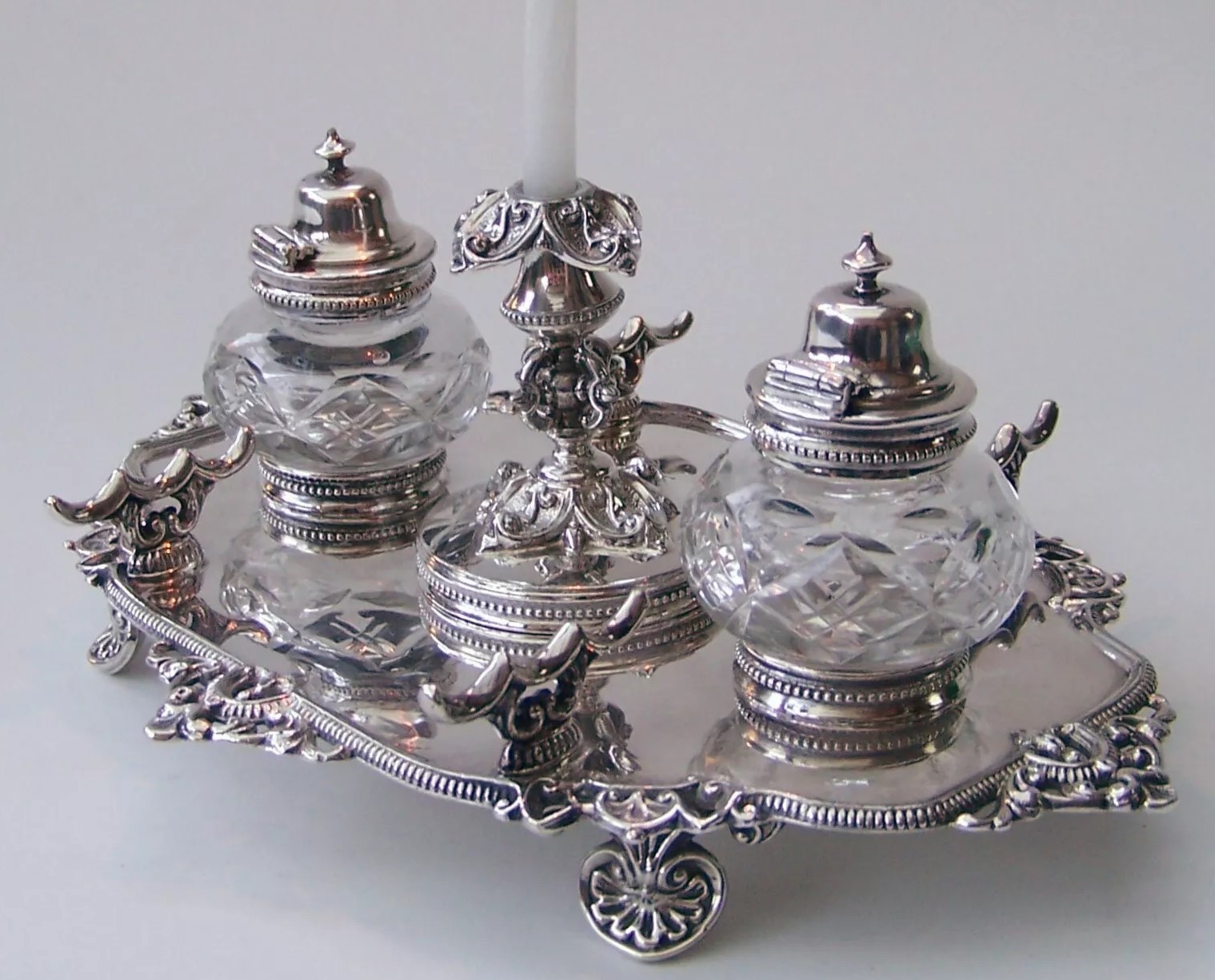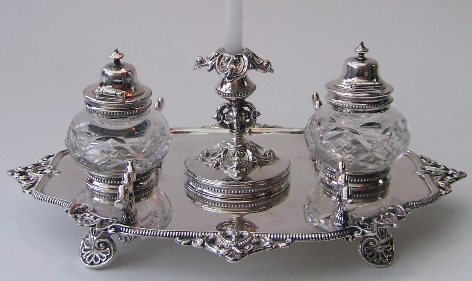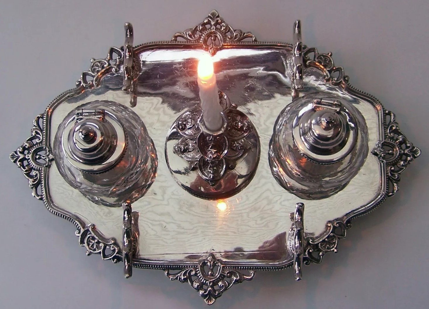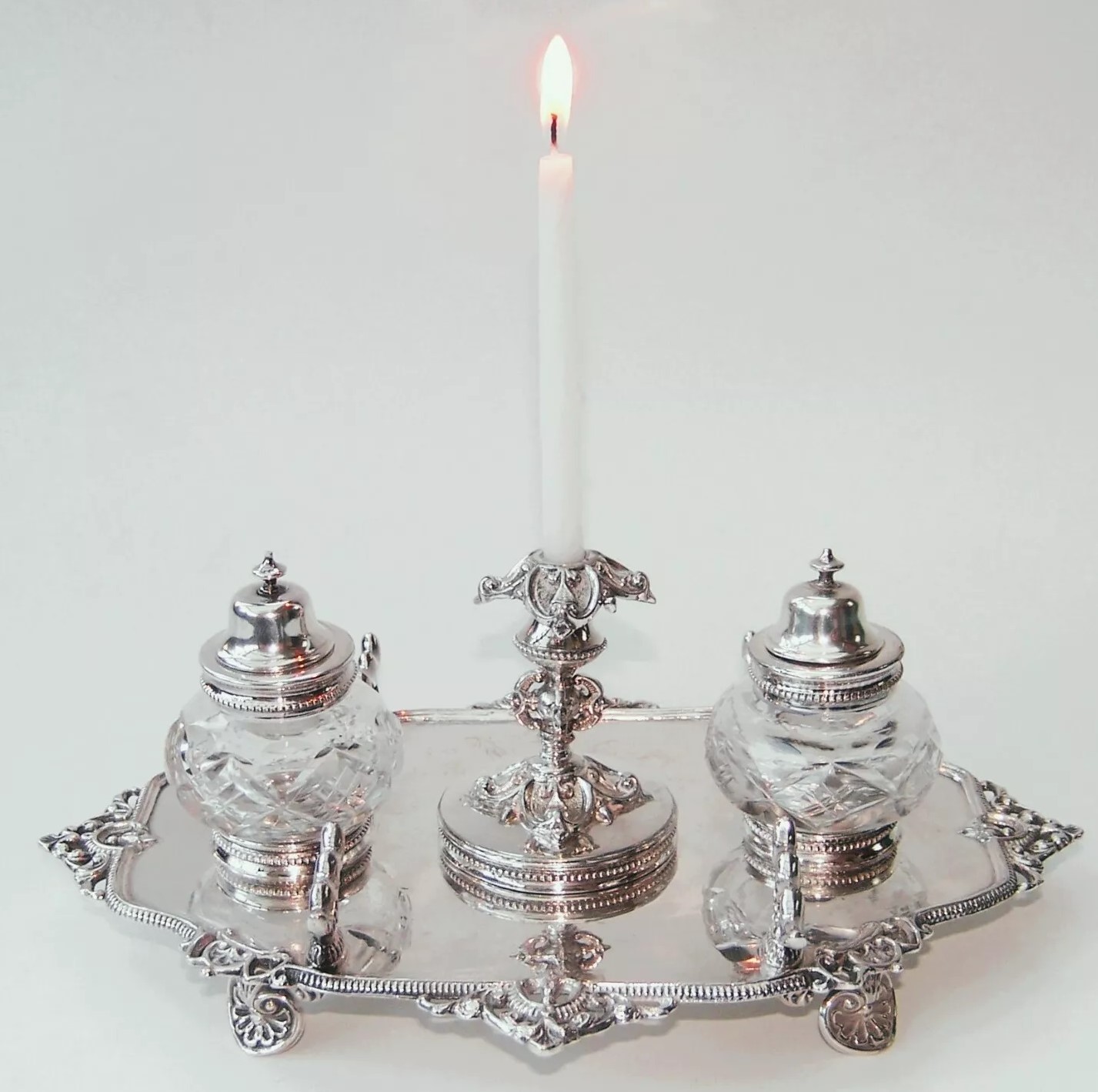 Silverplated Standish with Candleholder