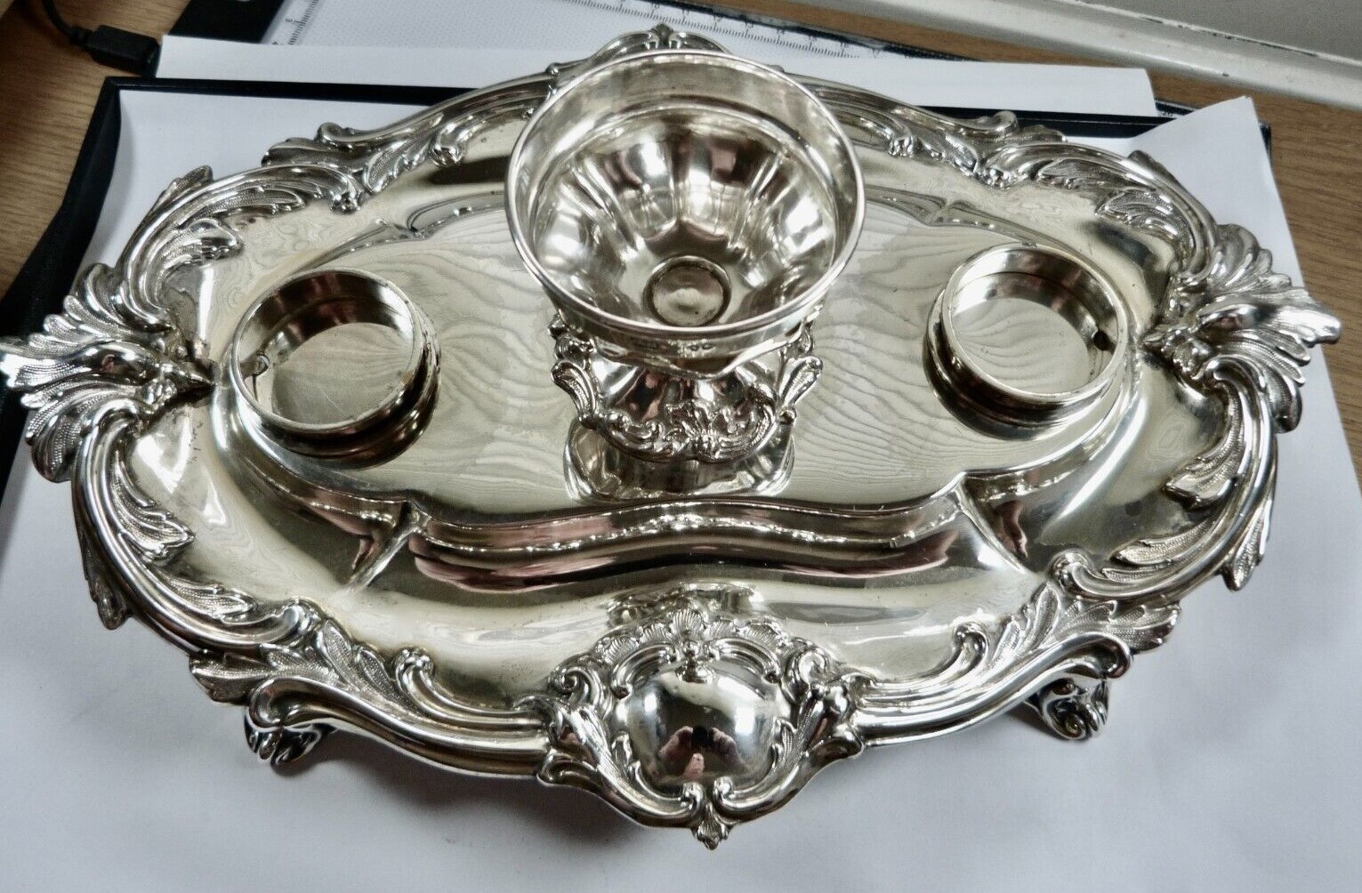 Solid Silver Double Inkwell Standish