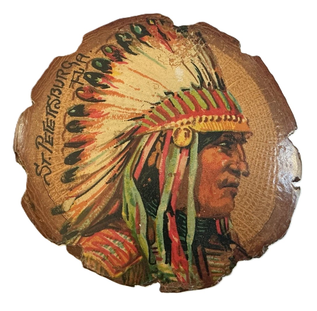 • Why the mismatch? During the “Golden Age of Souvenirs” (roughly 1920s–1950s), manufacturers used generic stock images that represented “Native Americana” to the general public. To a tourist in 1935, a “Chief” was a symbol of the Great Outdoors and the exotic, whether they were in St. Petersburg, Florida, or the Adirondacks. It wasn’t until later that souvenirs became more geographically specific with flamingos, alligators, or palm trees for Florida souvenirs.