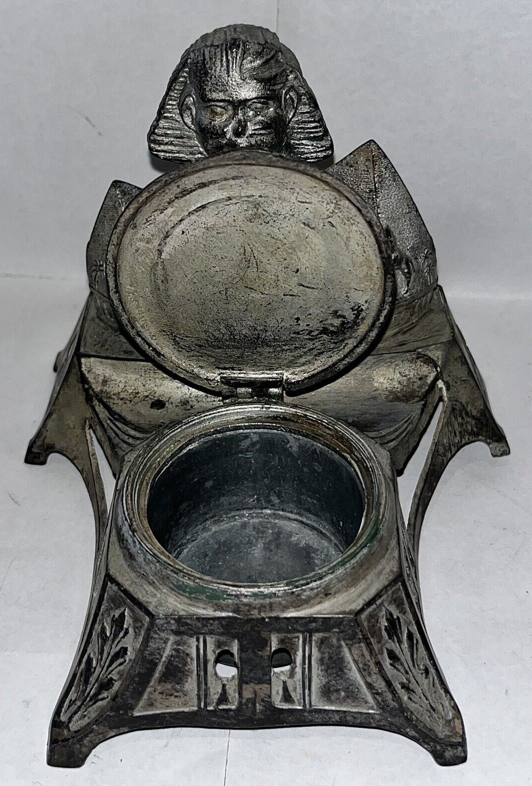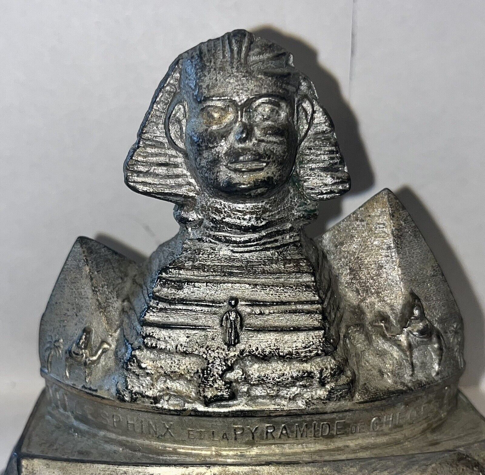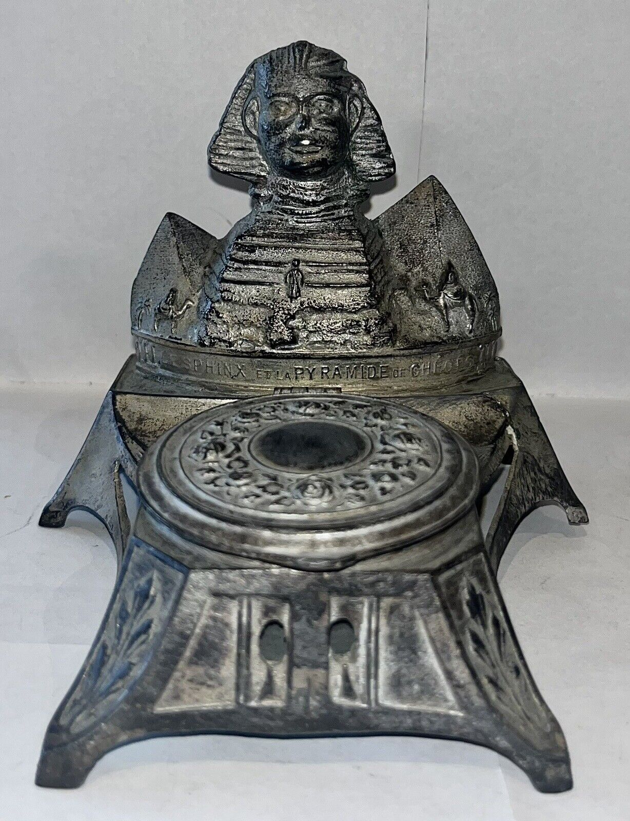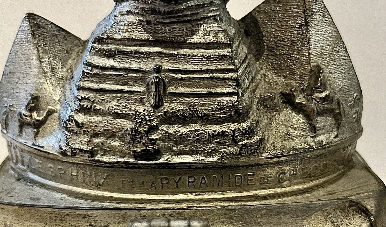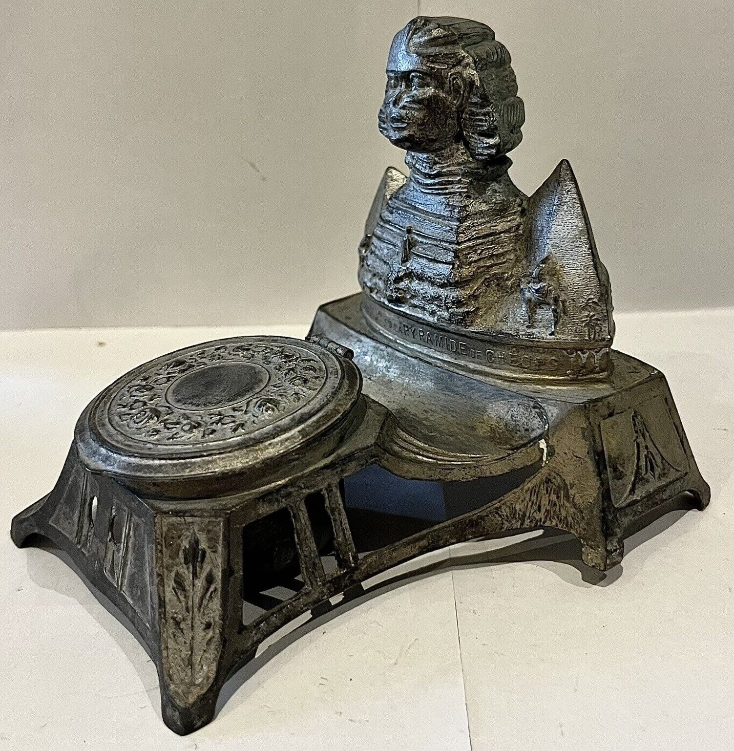 A souvenir of Egypt in the form of an inkwell with replicas of the Sphinx and pyramids. The front reads, “Le Sphinx et La Pyramide de Cheops”.