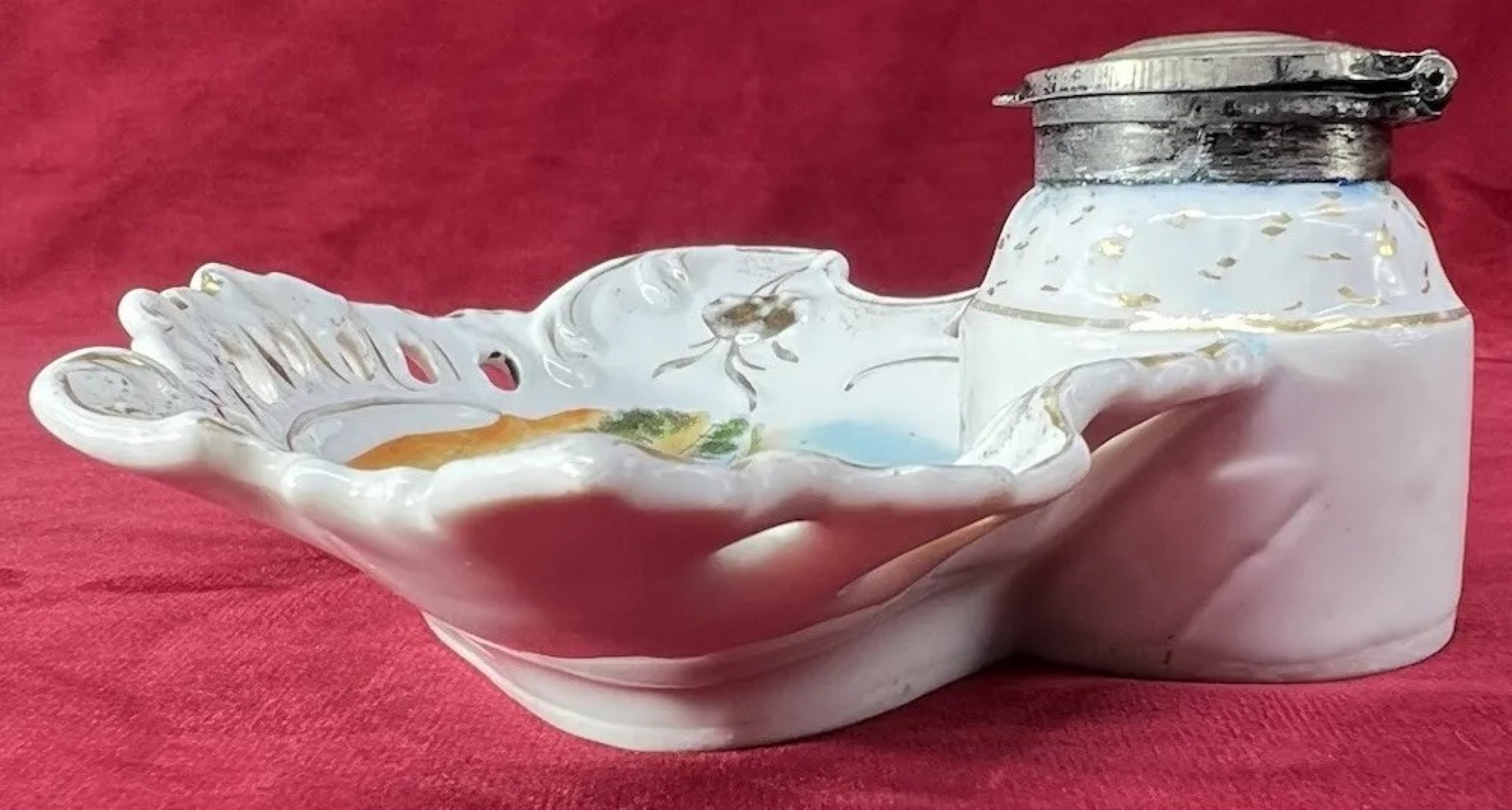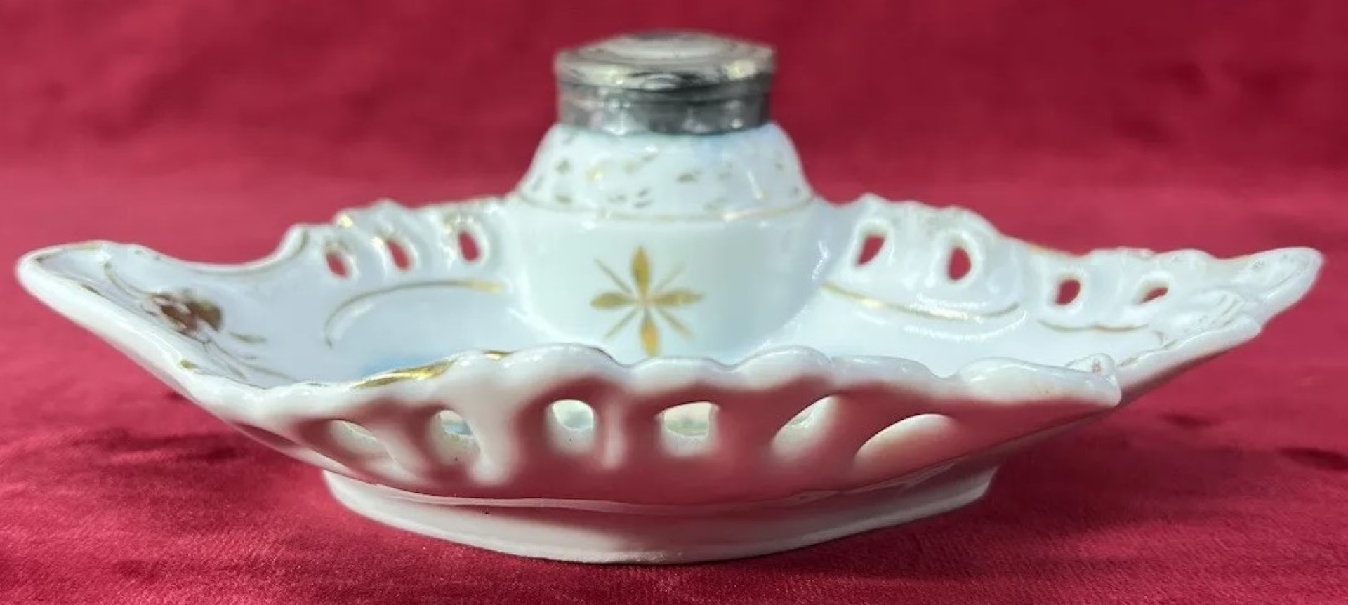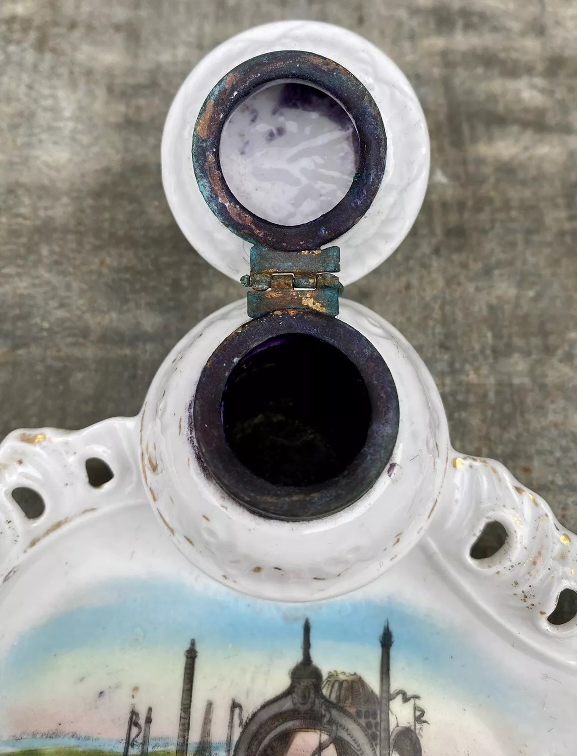 This porcelain inkstand is a souvenir from the Exposition Universelle of 1900. This World’s Fair was held in Paris at the esplanade of Les Invalides, the Champ de Mars, the Trocadéro and at the banks of the Seine between them. More than fifty million people visited the fair. Many international congresses and other events were held within the framework of the exposition, including the 1900 Summer Olympics.