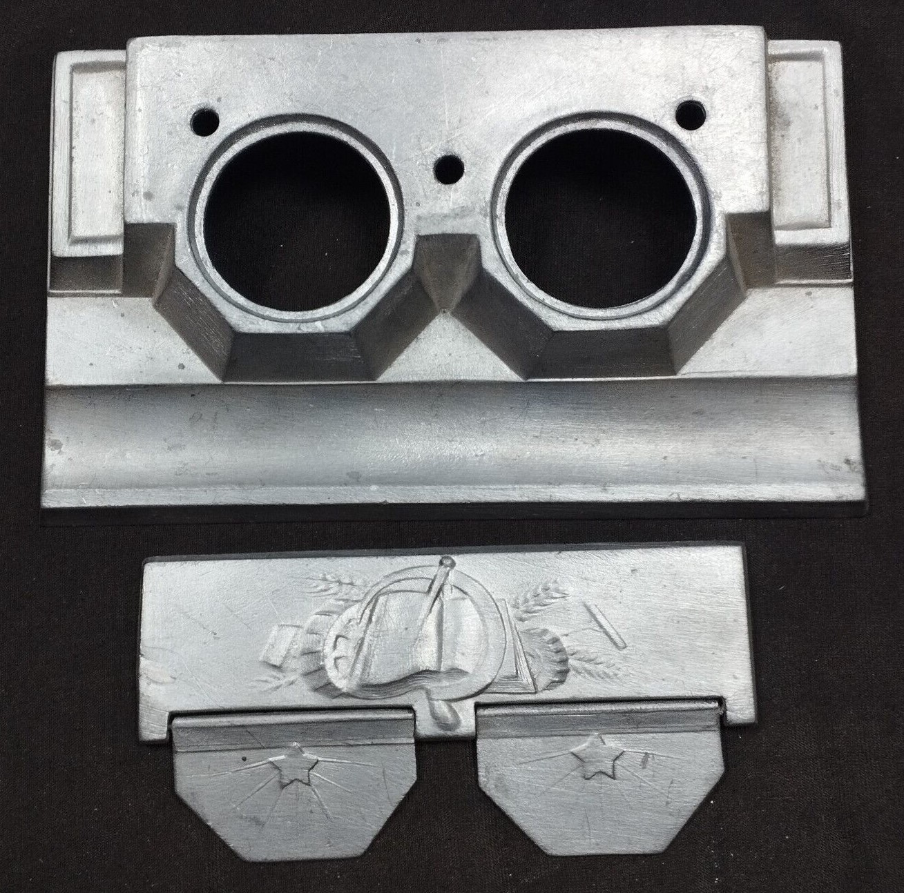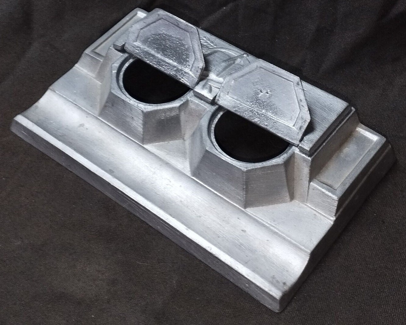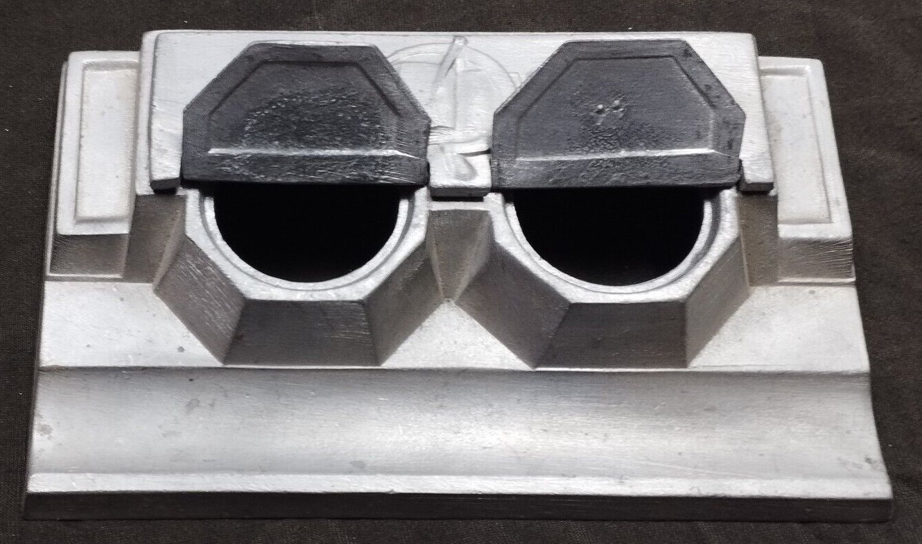 Soviet made metal double inkstand (missing inserts) from the 1930’s. Engraved on the underside: “Technolog Factory No. 51, Moscow”.