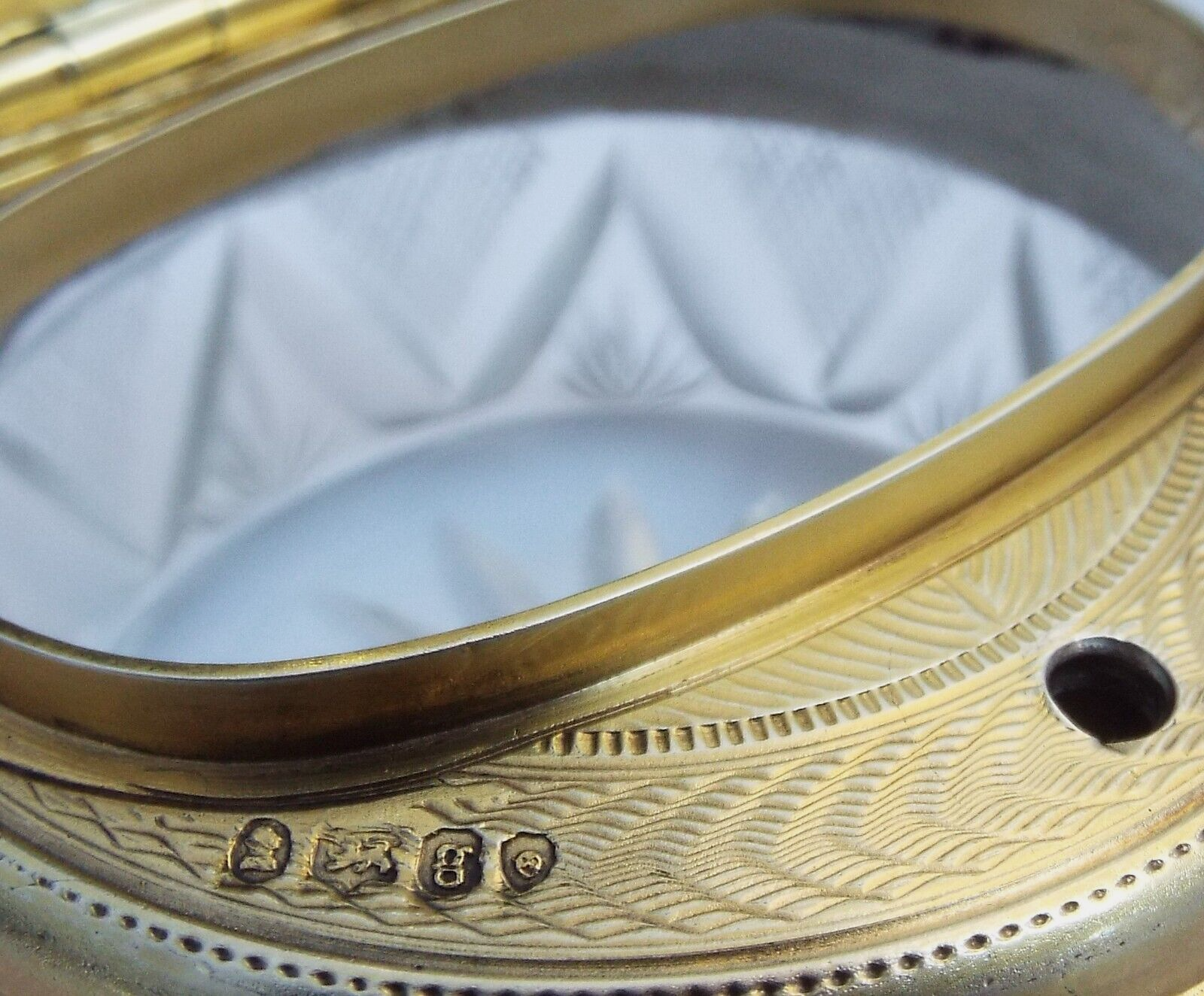 The inkwell has a full set of English silver hallmarks, which include the silver duty stamp of King George the Third. The silversmith’s initials at “T.D.” (Thomas Dicks 1798 – 1822).