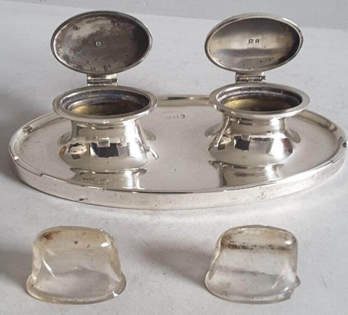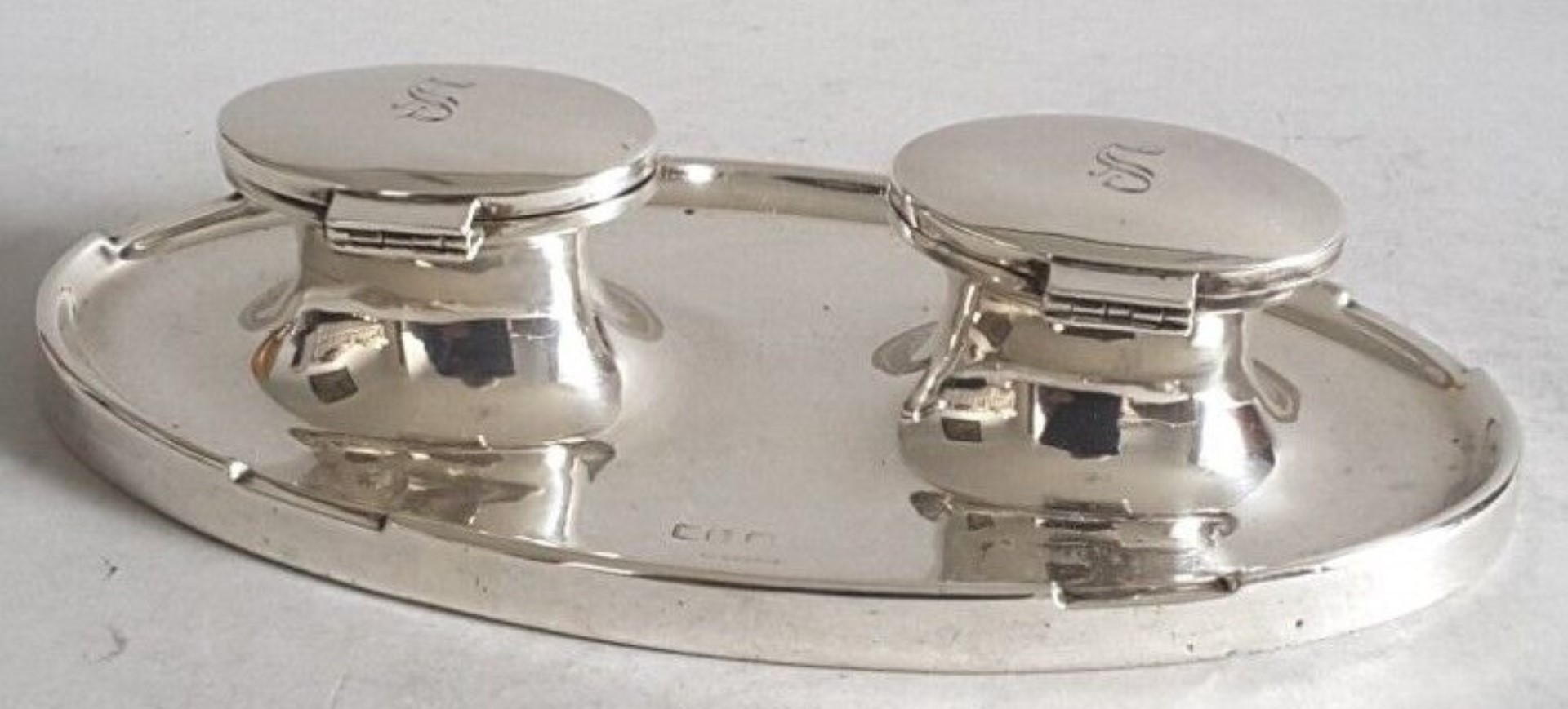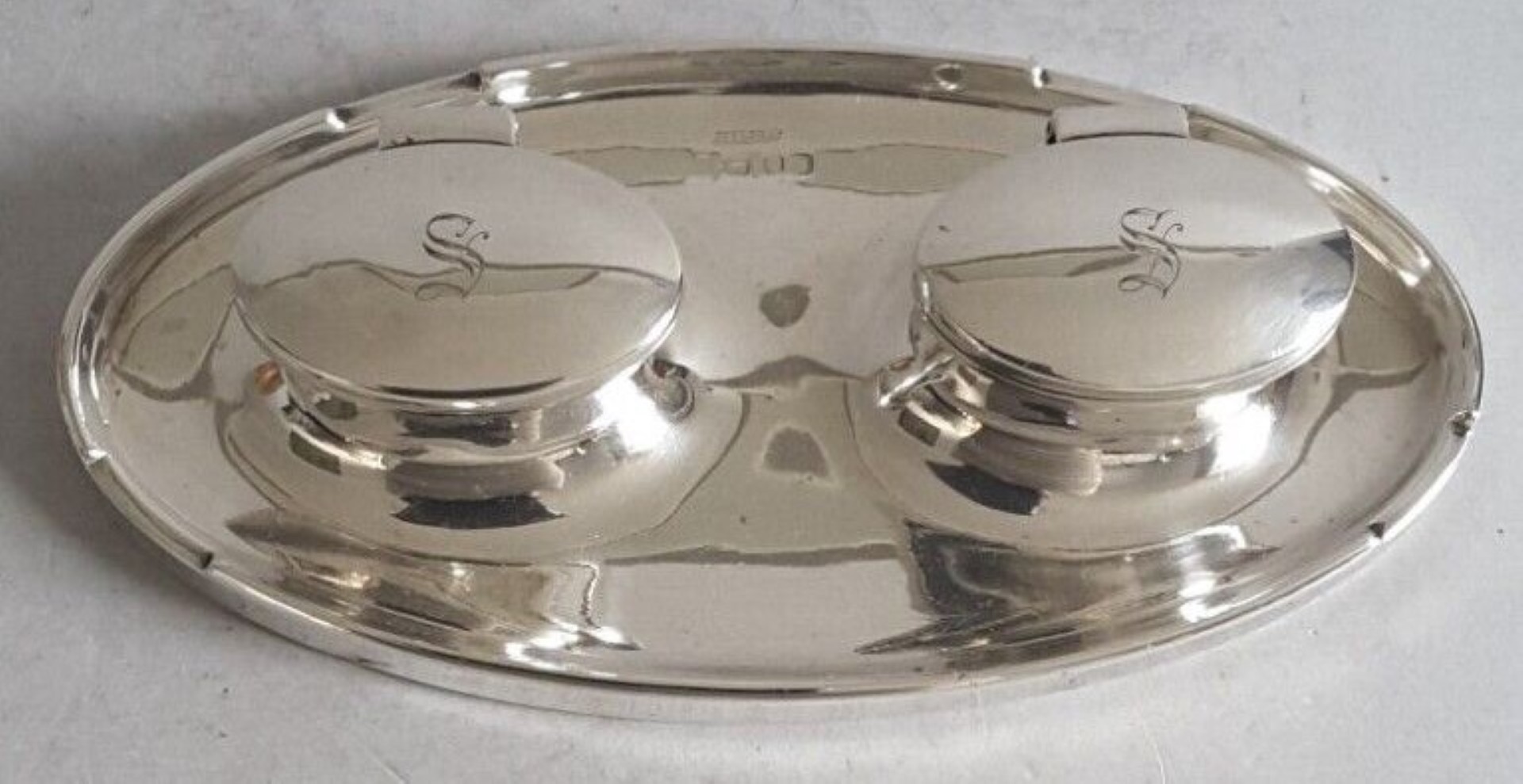 Sterling Oval Double Inkstand