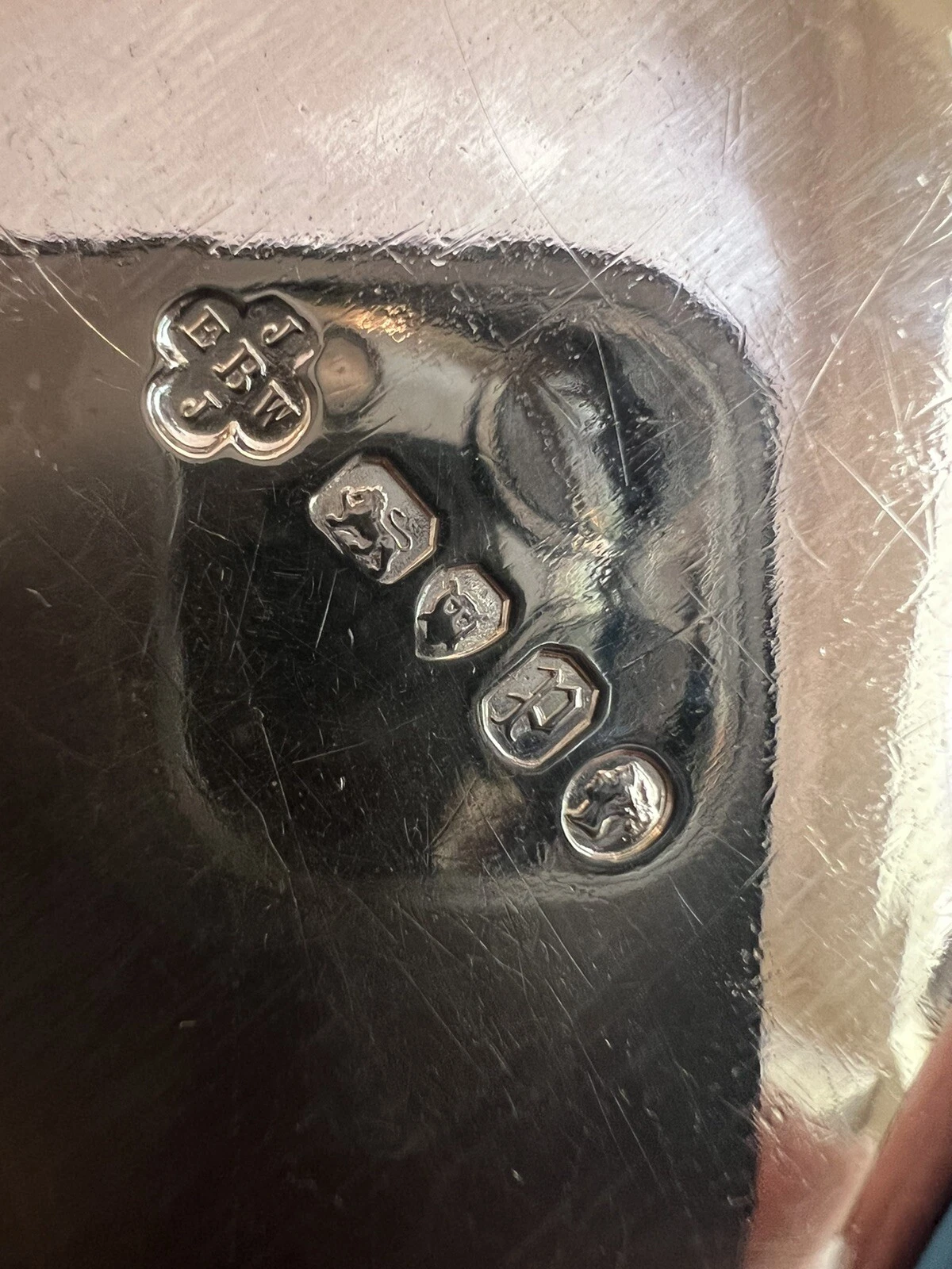1. Maker’s Mark: The quatrefoil shape containing initials (E, J, W, & B) belongs to Edward, John & William Barnard. The Barnards are considered among the oldest and most prestigious manufacturing silversmiths in the world.