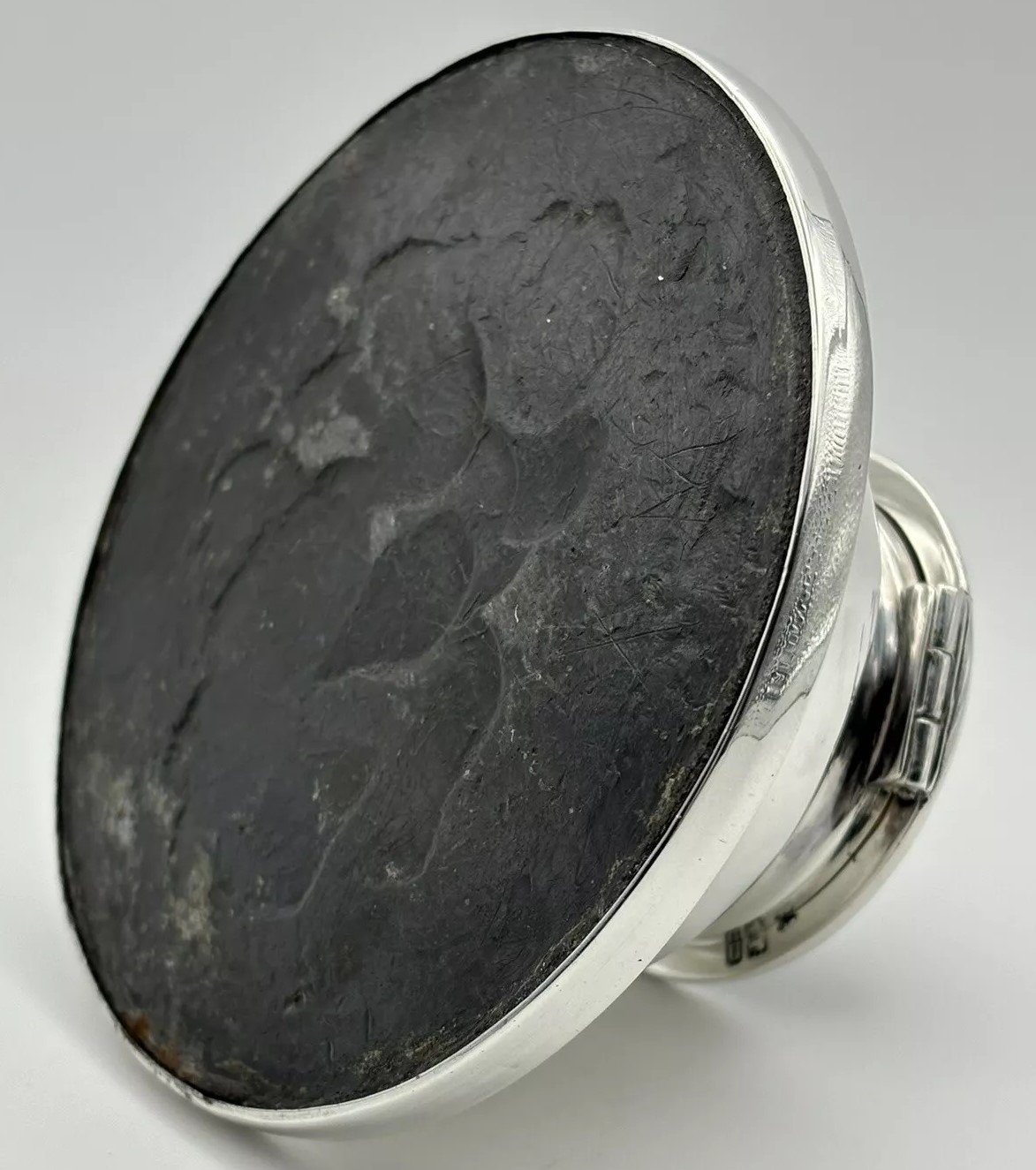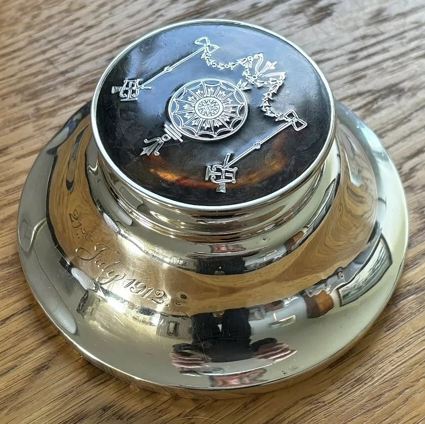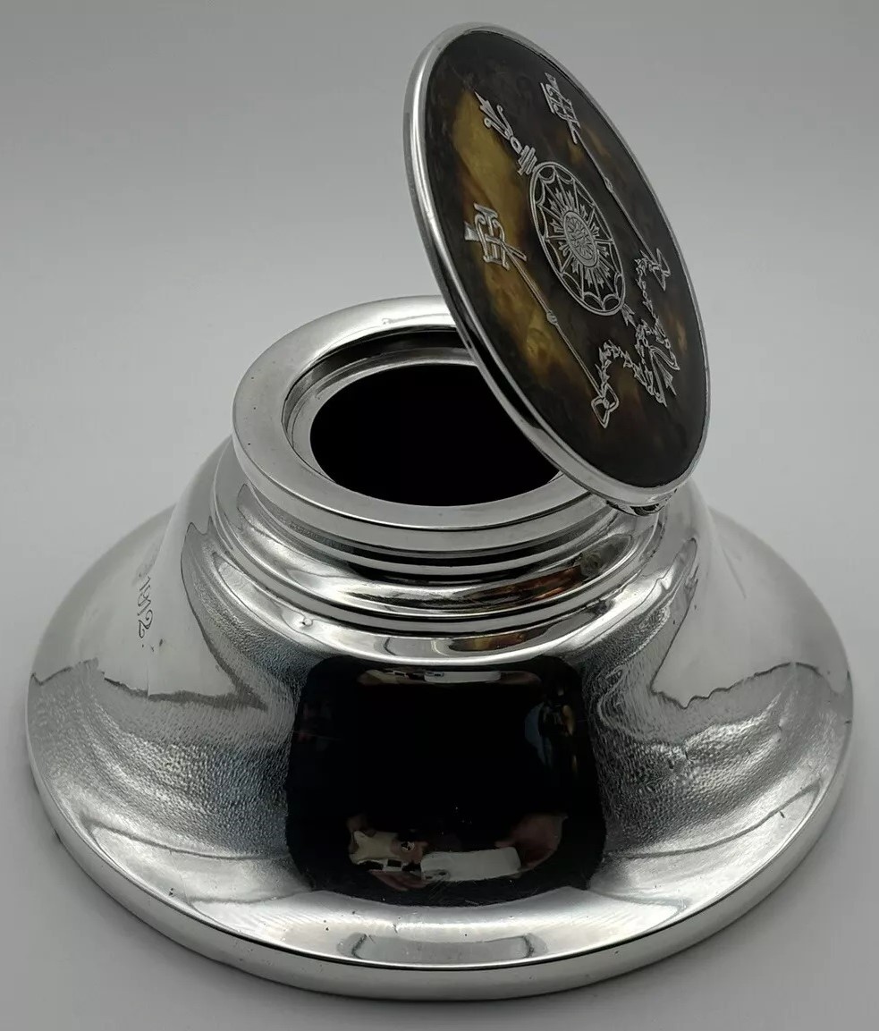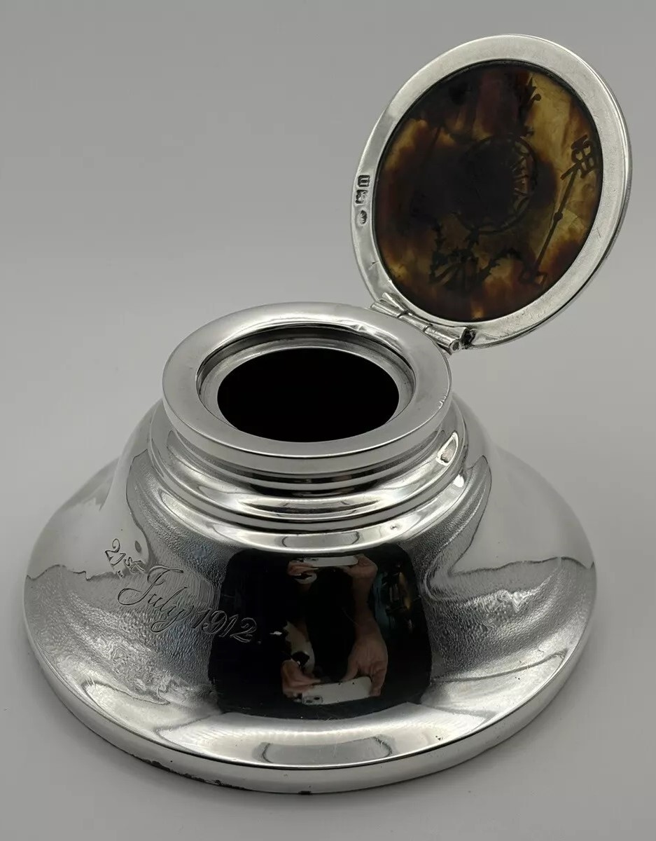 William Comyns & Sons was a renowned silversmith firm in London, known for producing high-quality silverware. The hallmark indicates that this inkwell was crafted in 1912, during a period when the firm was at the height of its production.