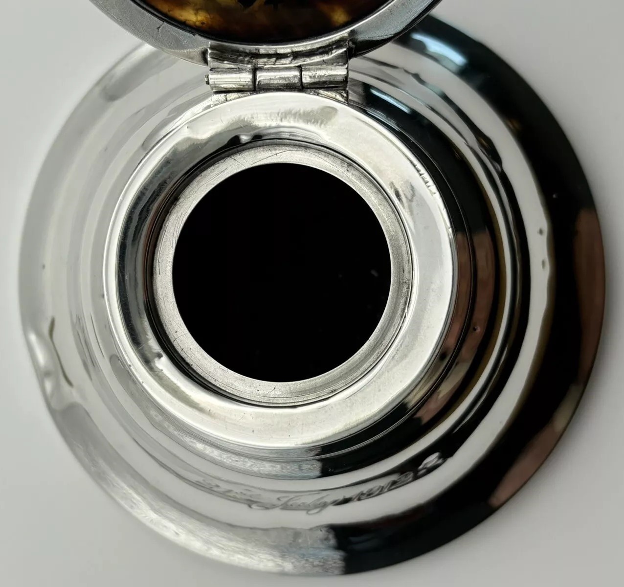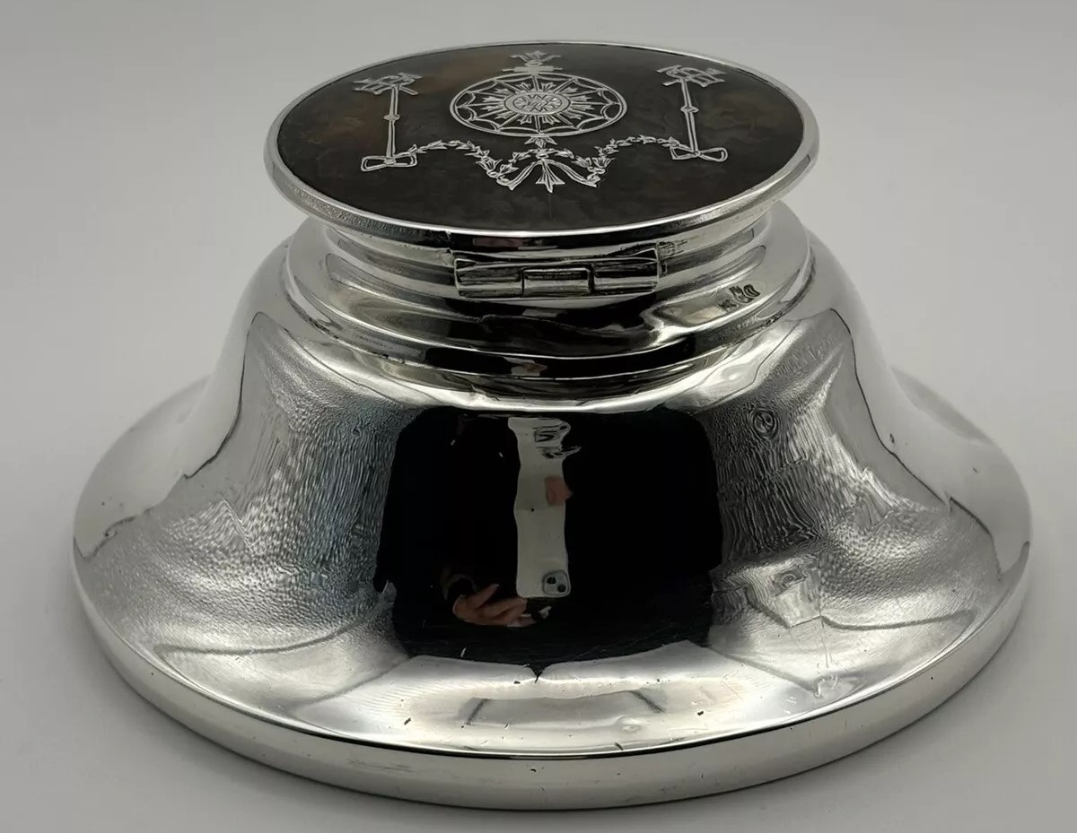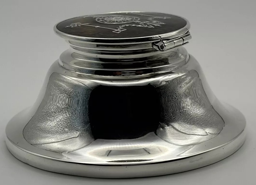 Sterling Silver Inkwell with Piqué Lid