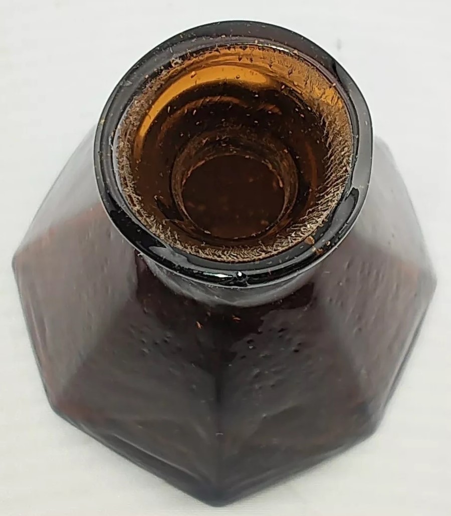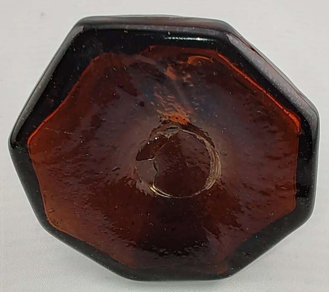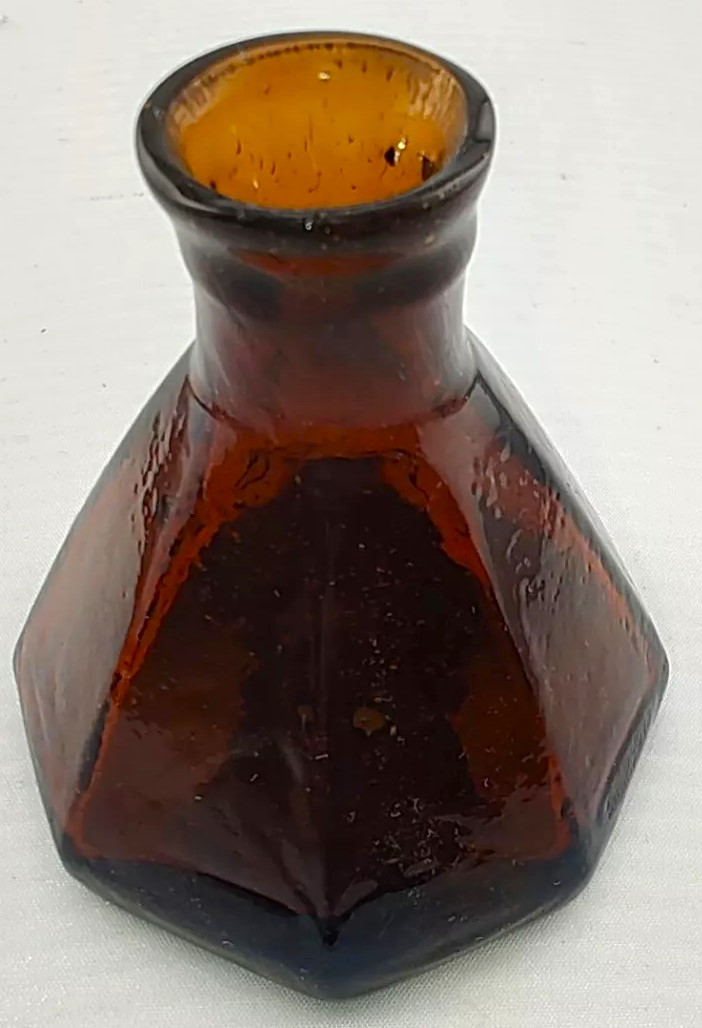 Stoddard (New Hampshire) 8-sided, amber glass umbrella ink bottle with open pontil.