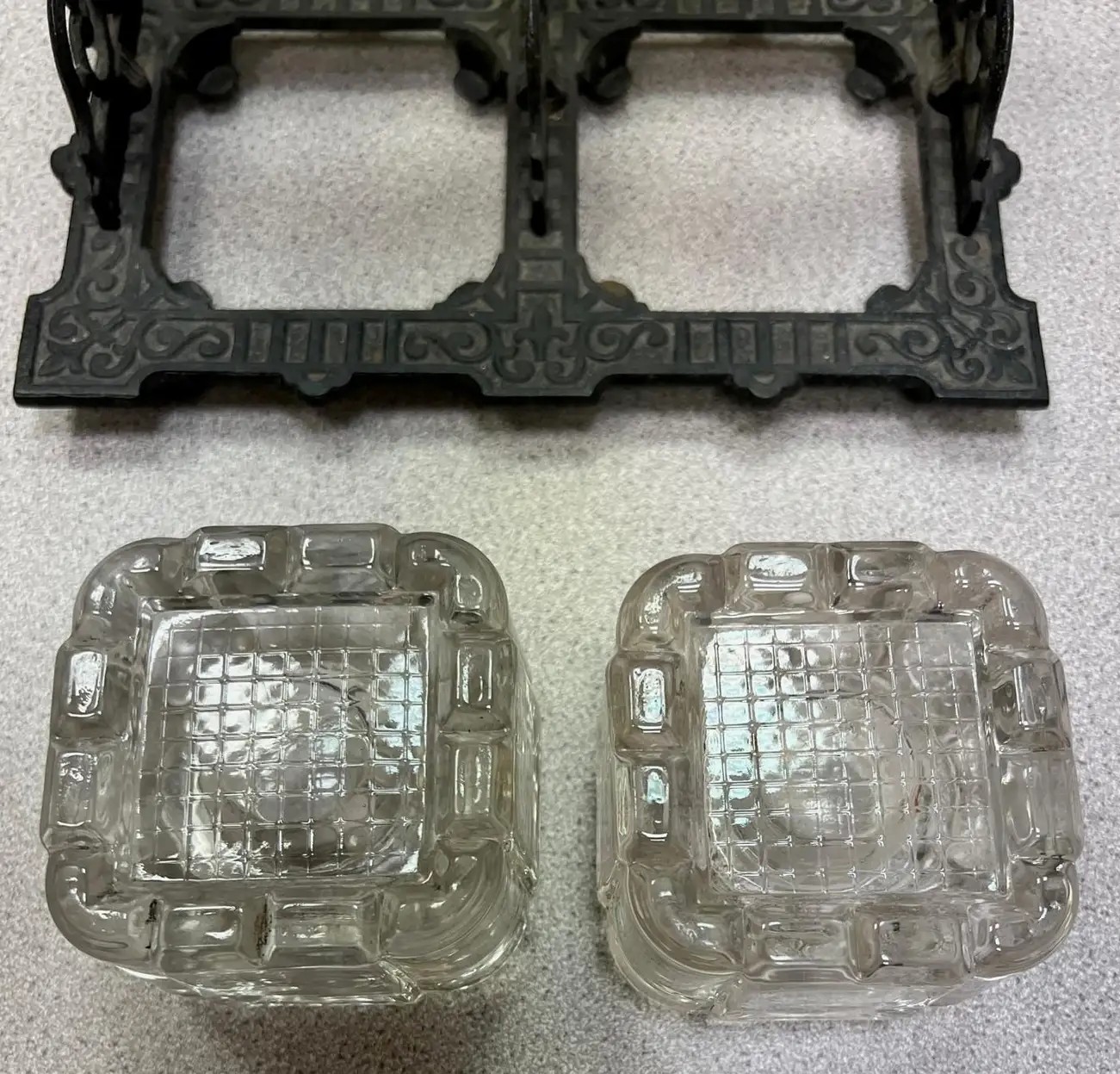 Based on the casting style and the Samuel C. Tatum company history, this inkstand was most likely produced between 1885 and 1900. By the 1910s, office aesthetics shifted toward simpler, “sanitary” glass designs, and the elaborate Gothic cast iron look began to fade.