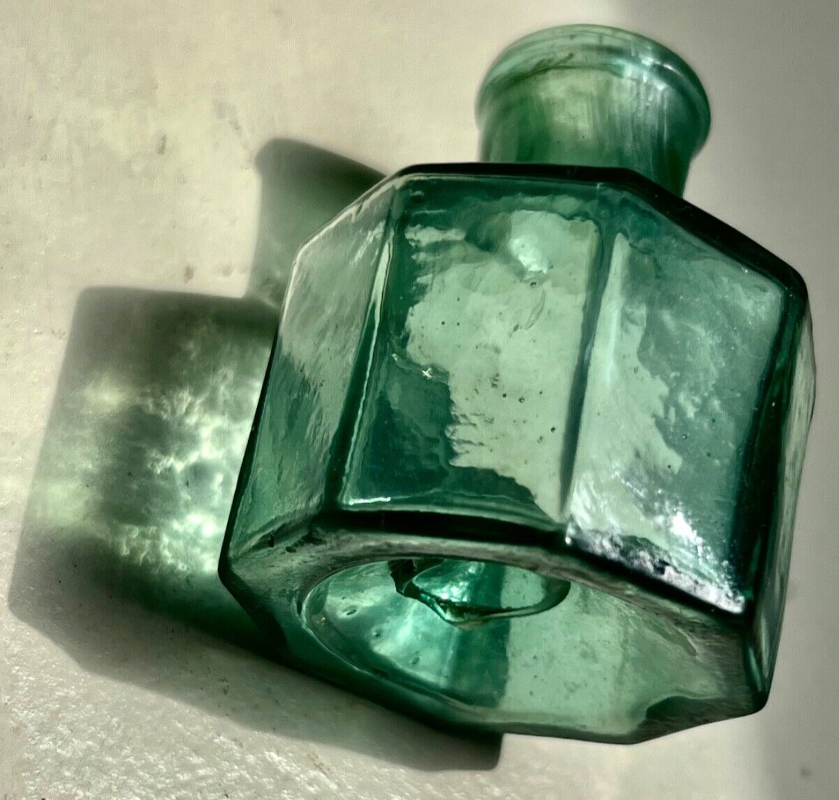 Teal Green Pontiled Ink Bottle