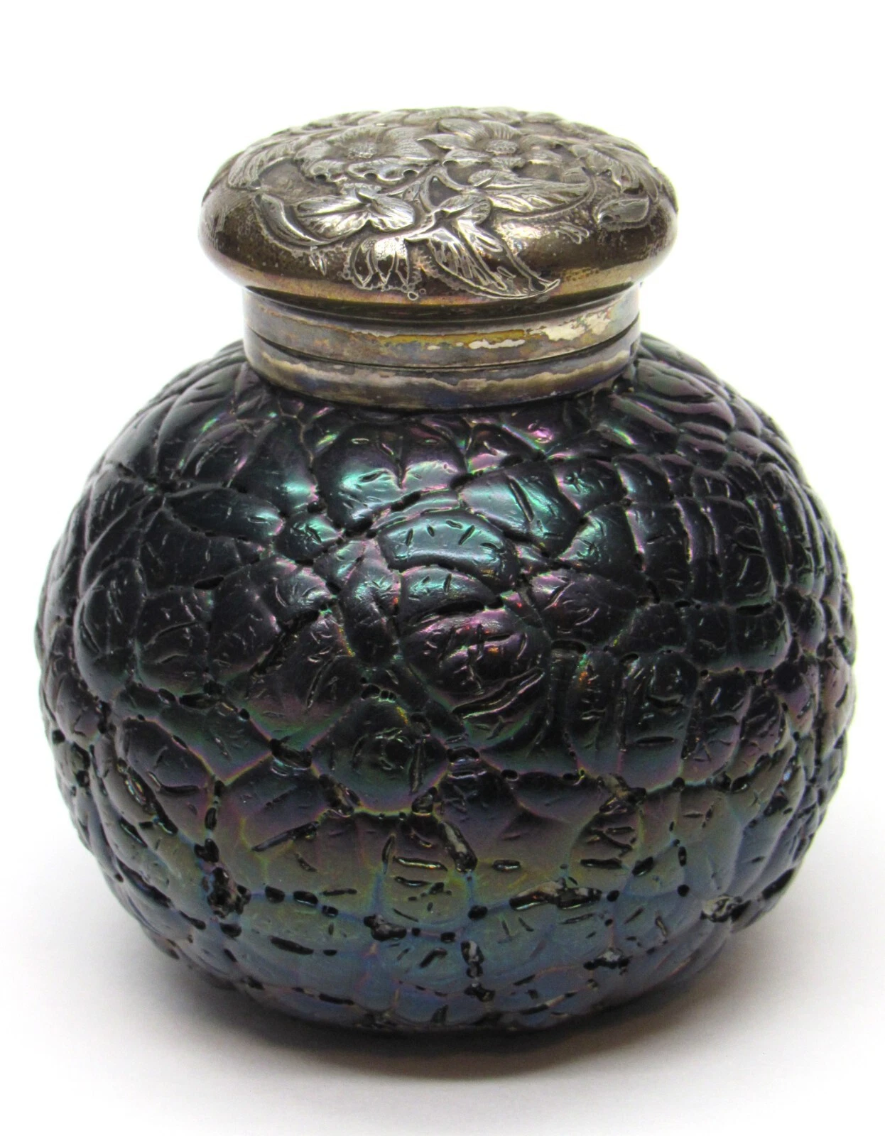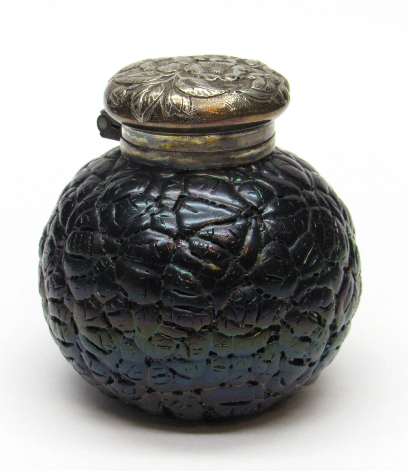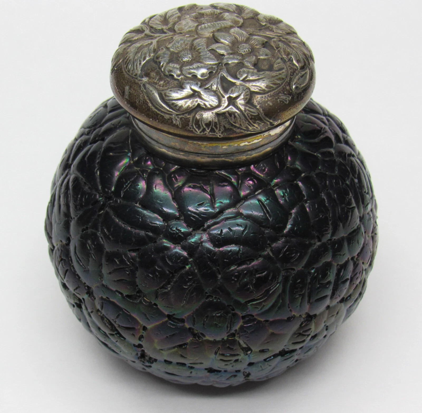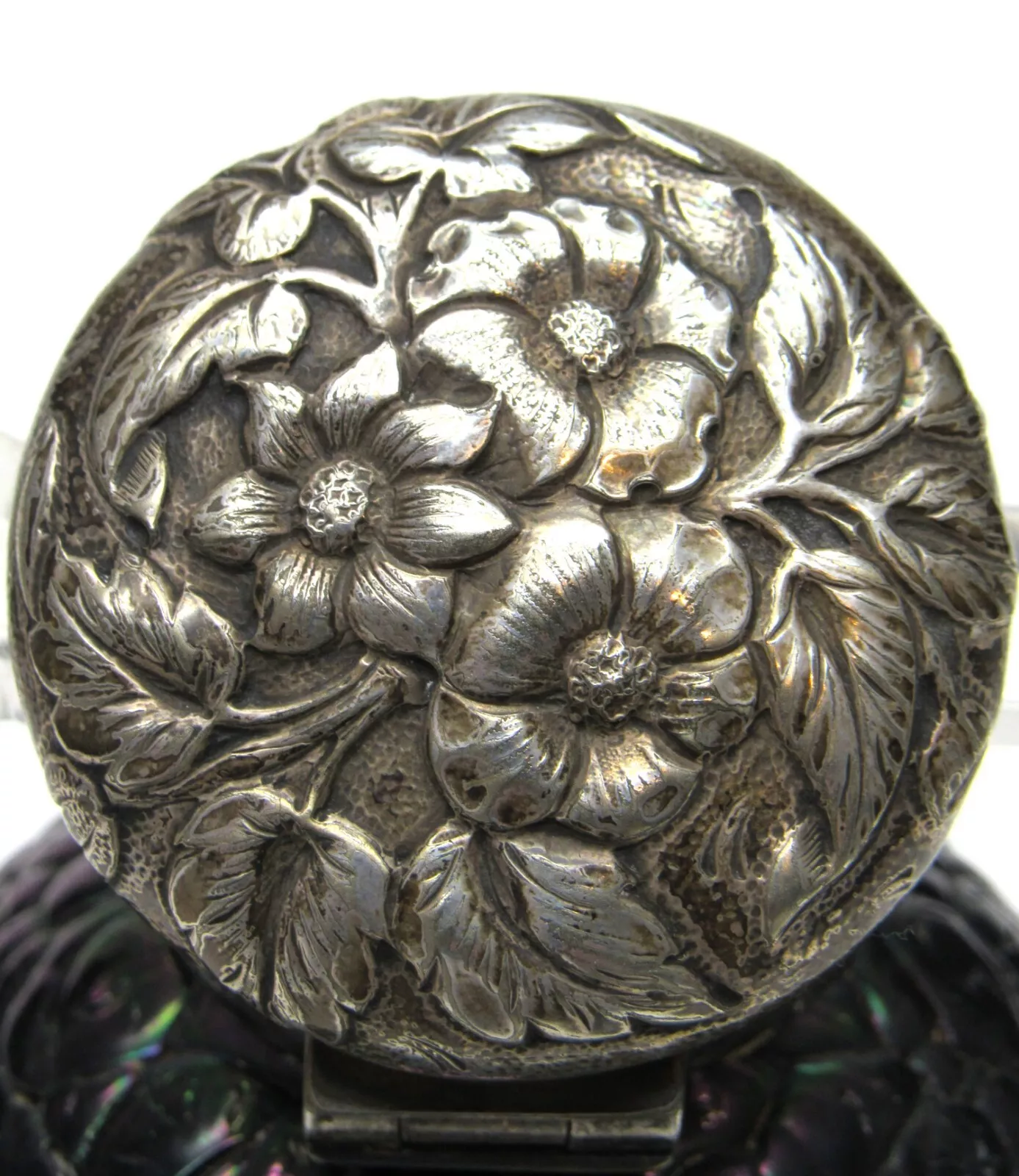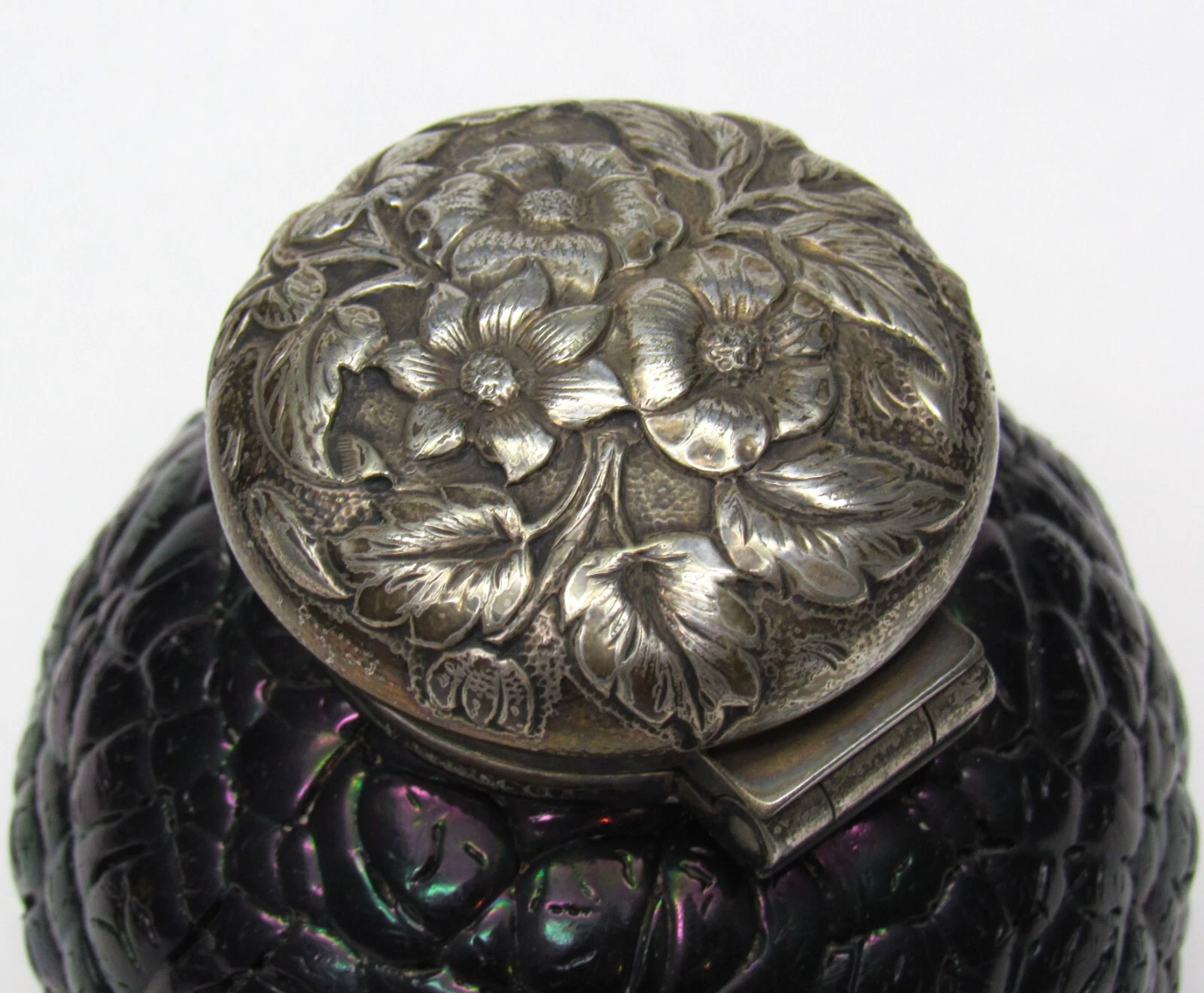 - Repoussé Floral Design: The intricate, raised floral pattern on the lid was created using the repoussé technique, where the design is hammered from the reverse side to create a low relief. This style of floral design was very popular in the late 19th century, especially in the Art Nouveau period.