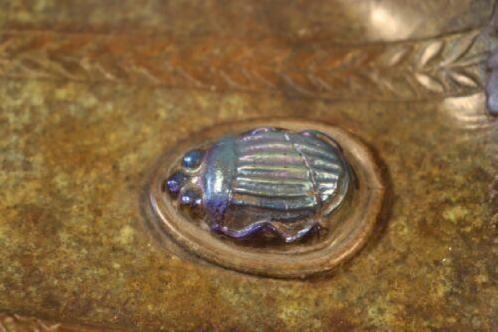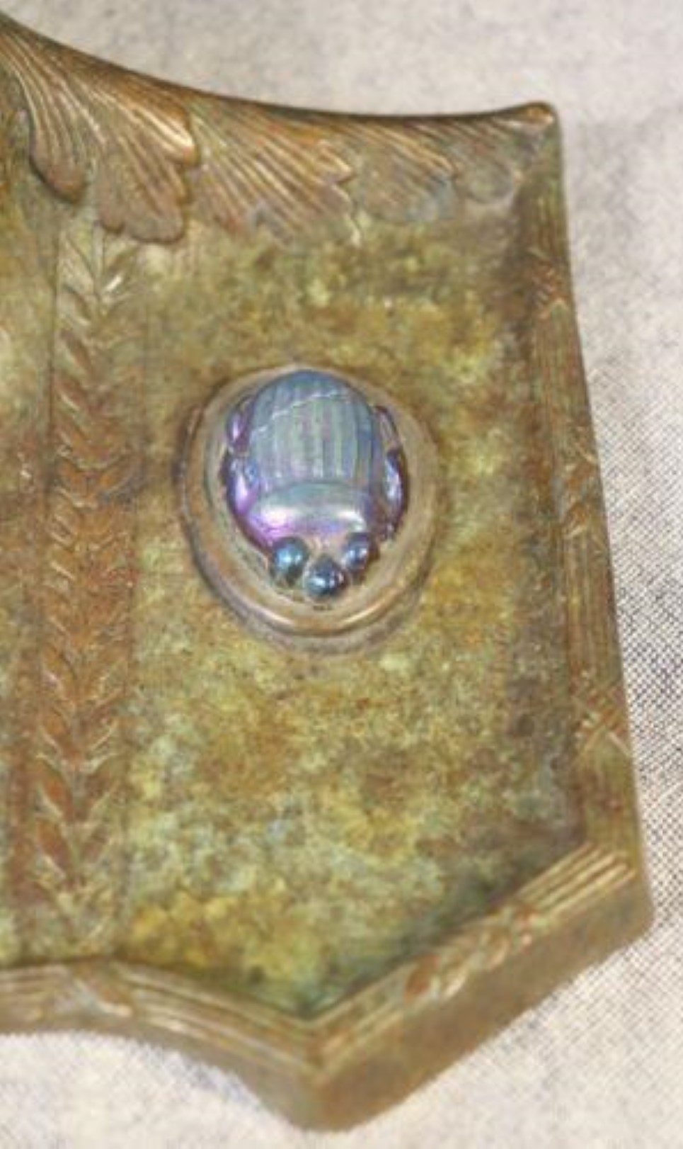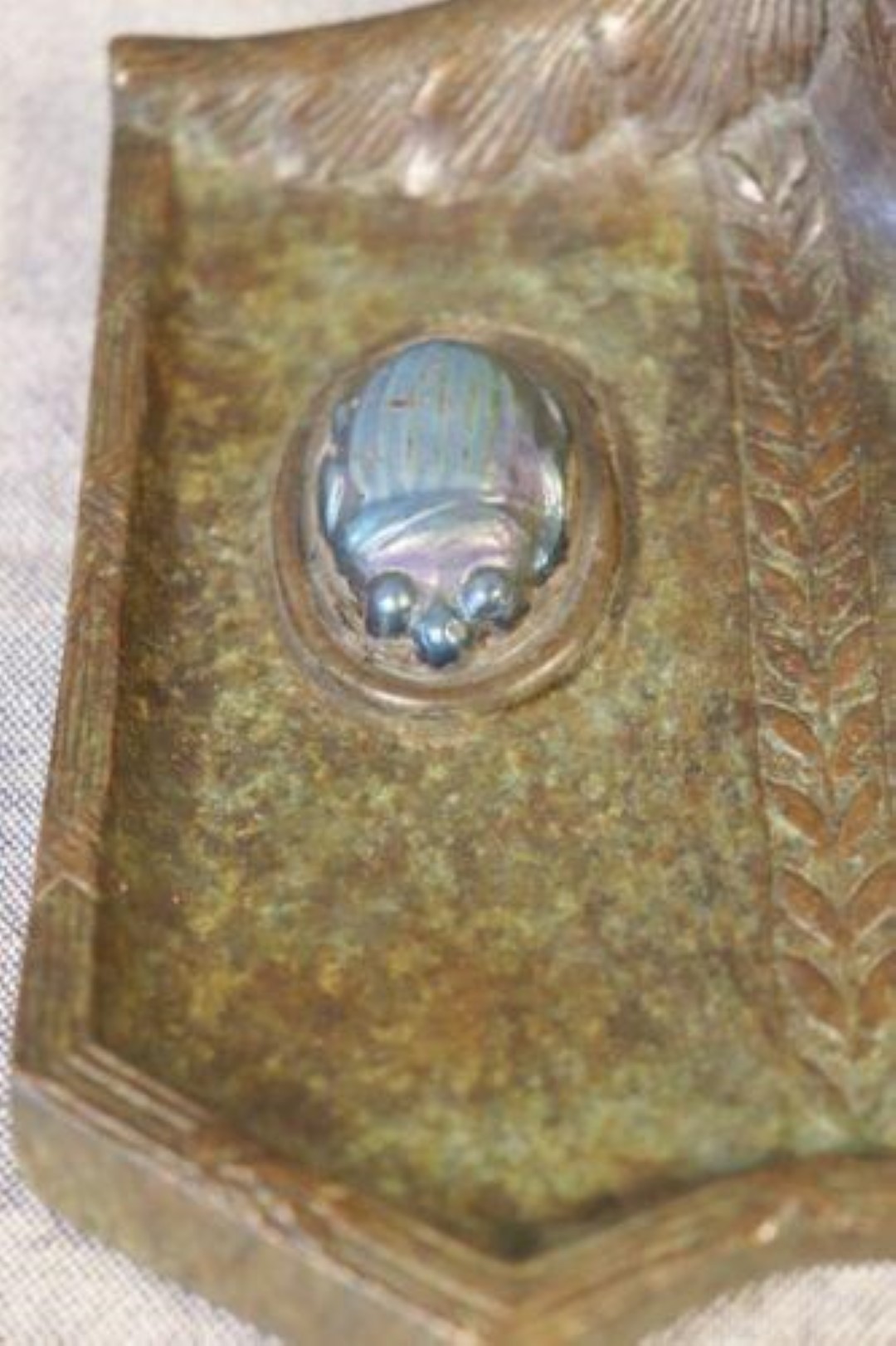 This Tiffany patinated bronze inkstand with its two favrile glass scarabs has an Egyptian vibe.