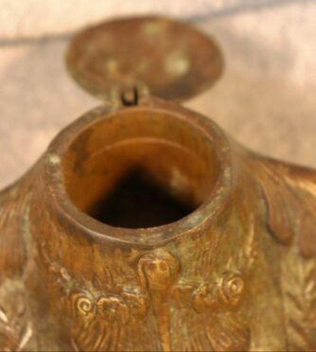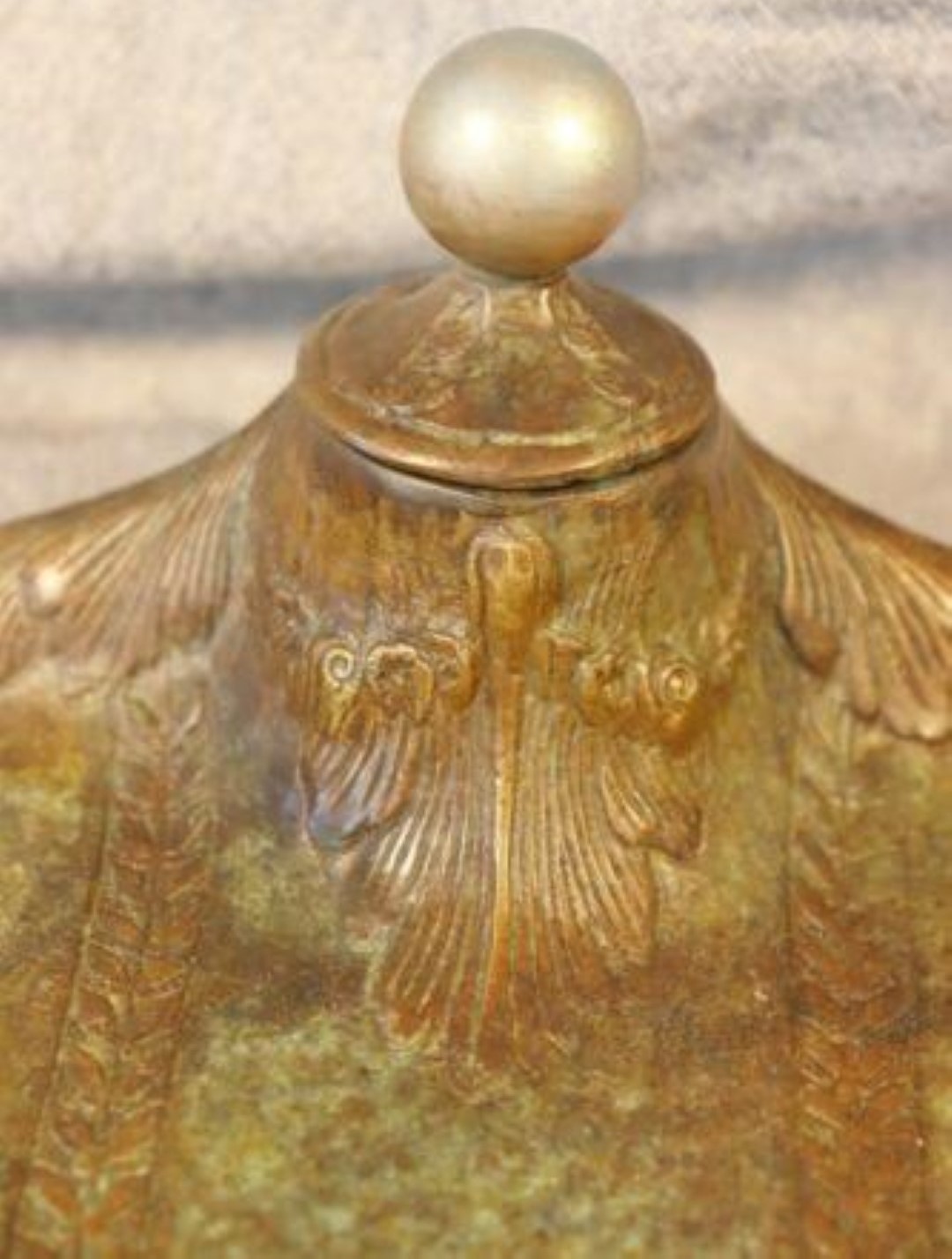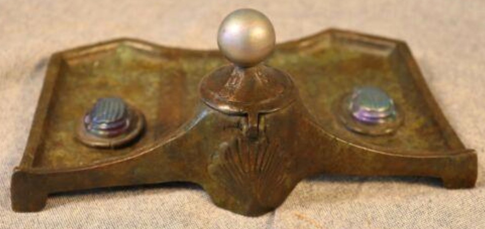 This Tiffany patinated bronze inkstand with its two favrile glass scarabs has an Egyptian vibe.