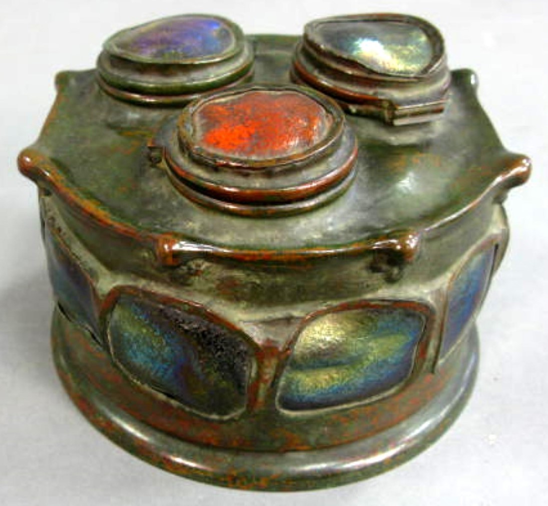 Tiffany Jeweled “Turtle-back Tile” Triple Inkstand