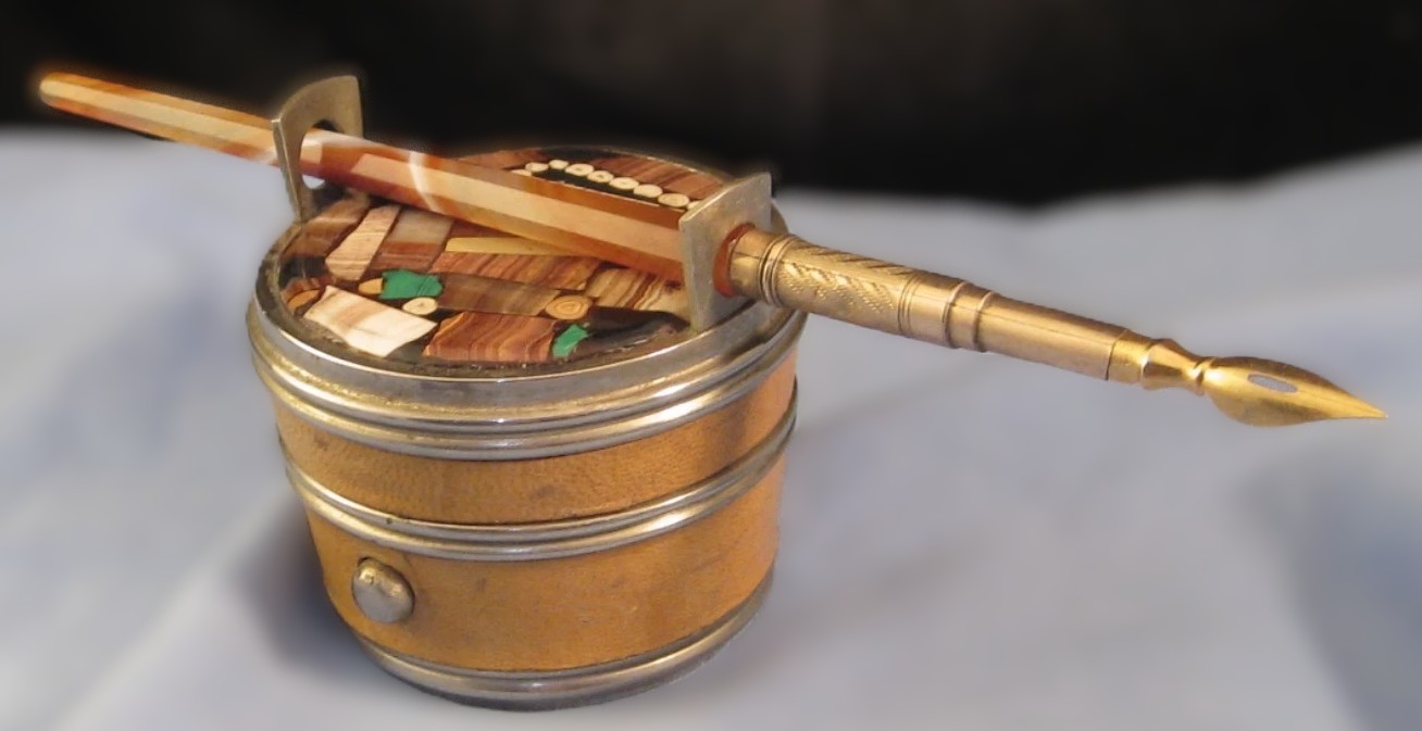 Traveling Inkwell with Stone Inlay