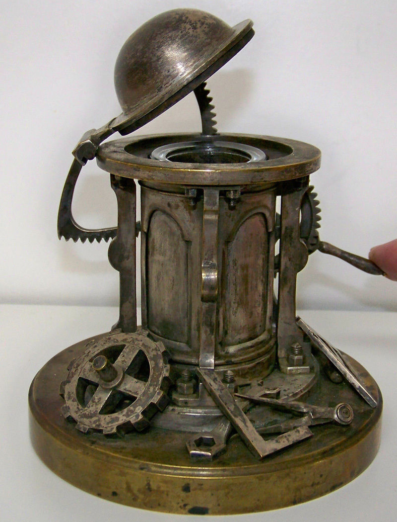 - : UNIQUE (one-of-a-kind) 1800’s Mechanical Masonic (?) Steampunk (!) Inkwell | Collectors Weekly. https://www.collectorsweekly.com/stories/198267-unique-one-of-a-kind-1800s-mechanical