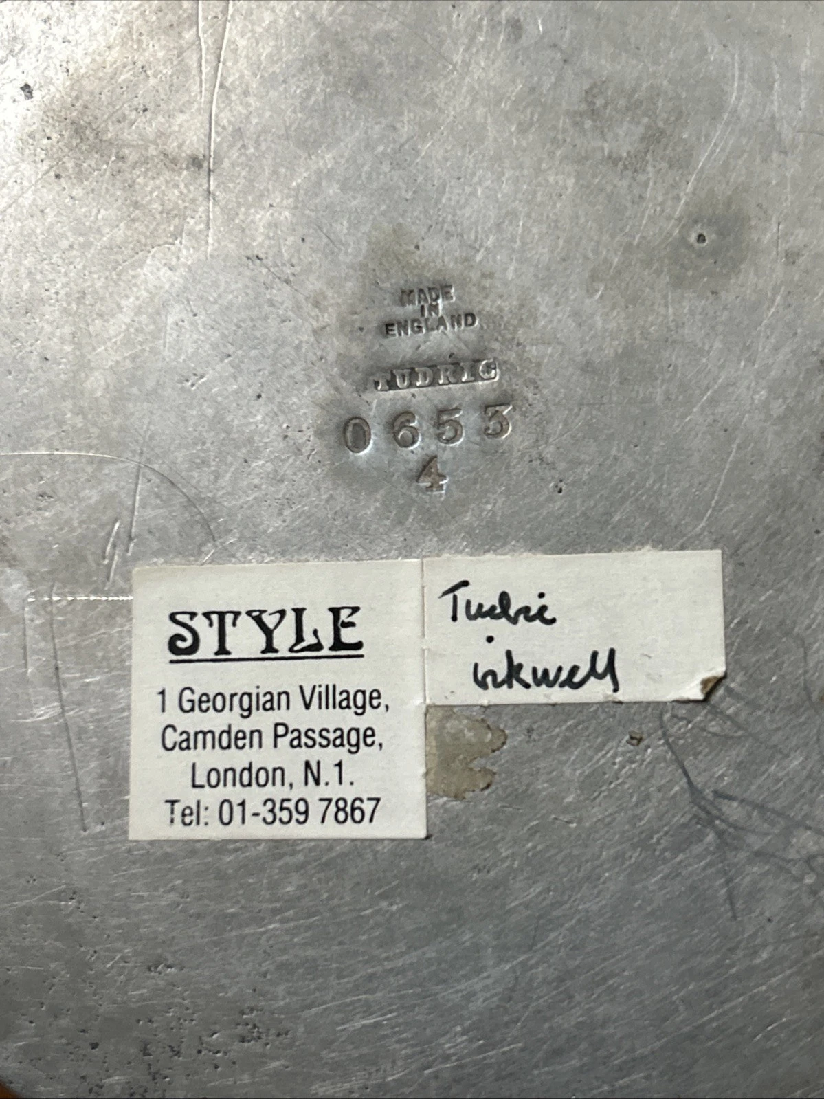 • Liberty & Co.: Founded by Arthur Lasenby Liberty in London, the company was a major purveyor of the Arts and Crafts and Art Nouveau movements. Liberty & Co. retailed their own line of high-quality pewterware under the brand name “Tudric.” This inkwell’s mark places it definitively within this line.