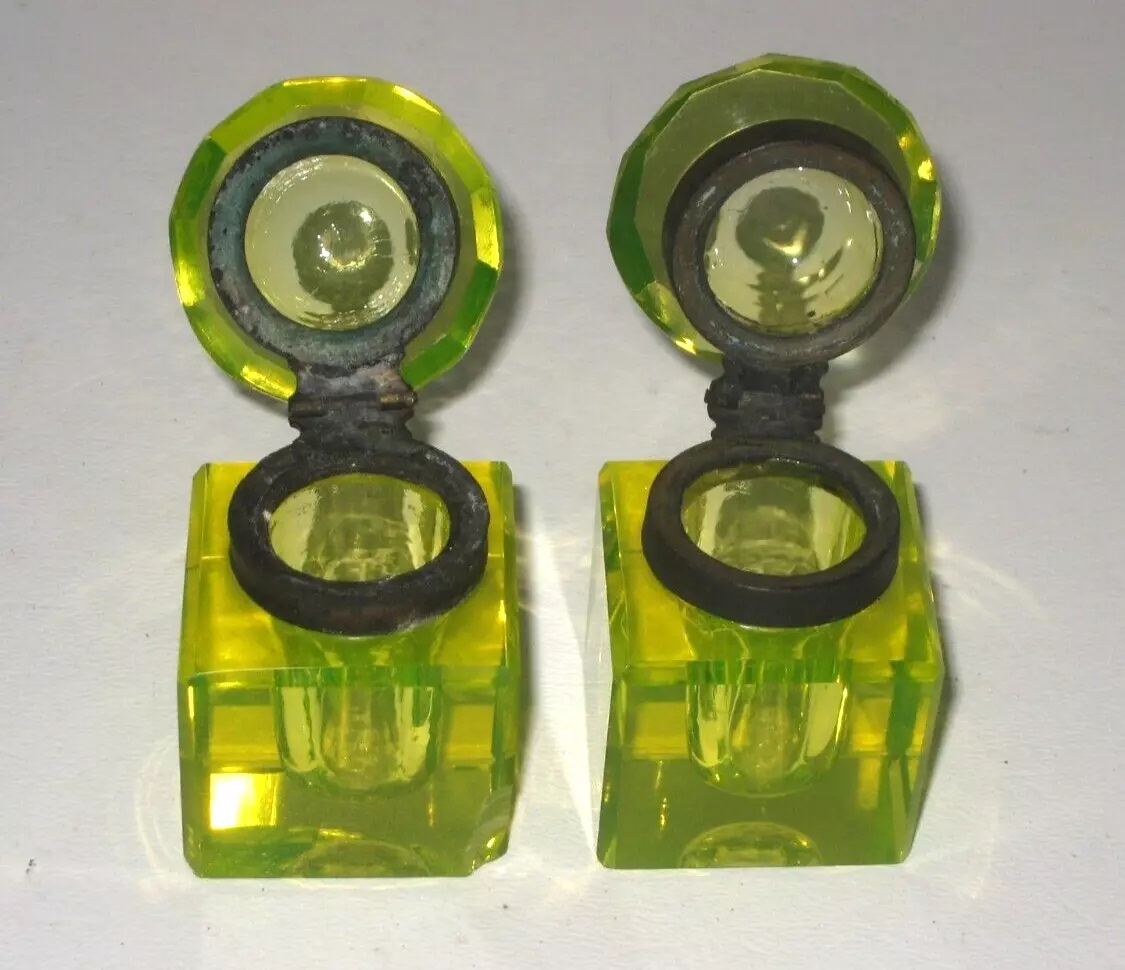 Vaseline Glass Inkstand