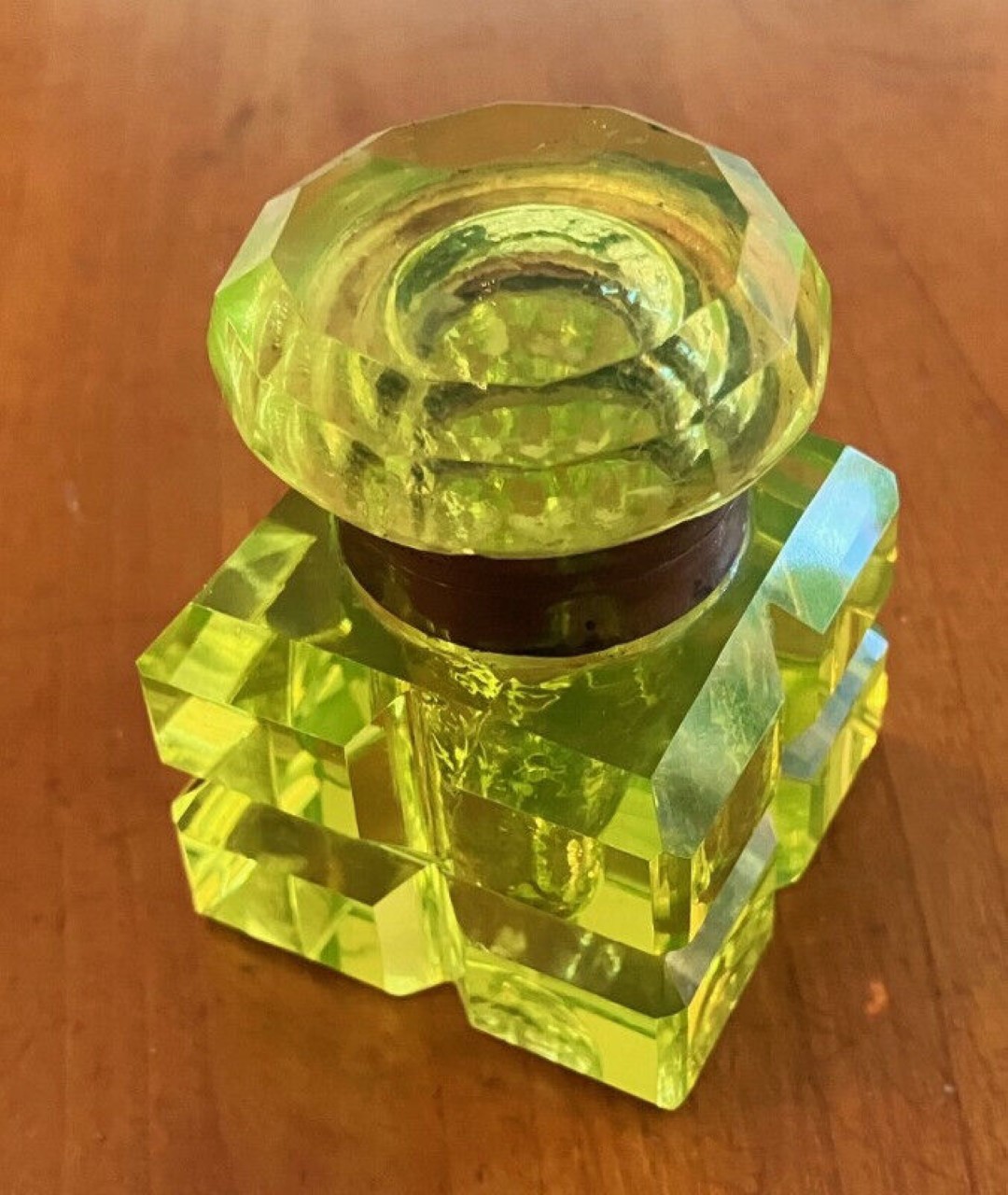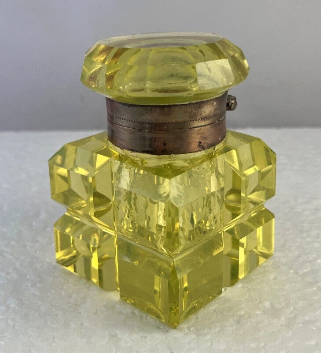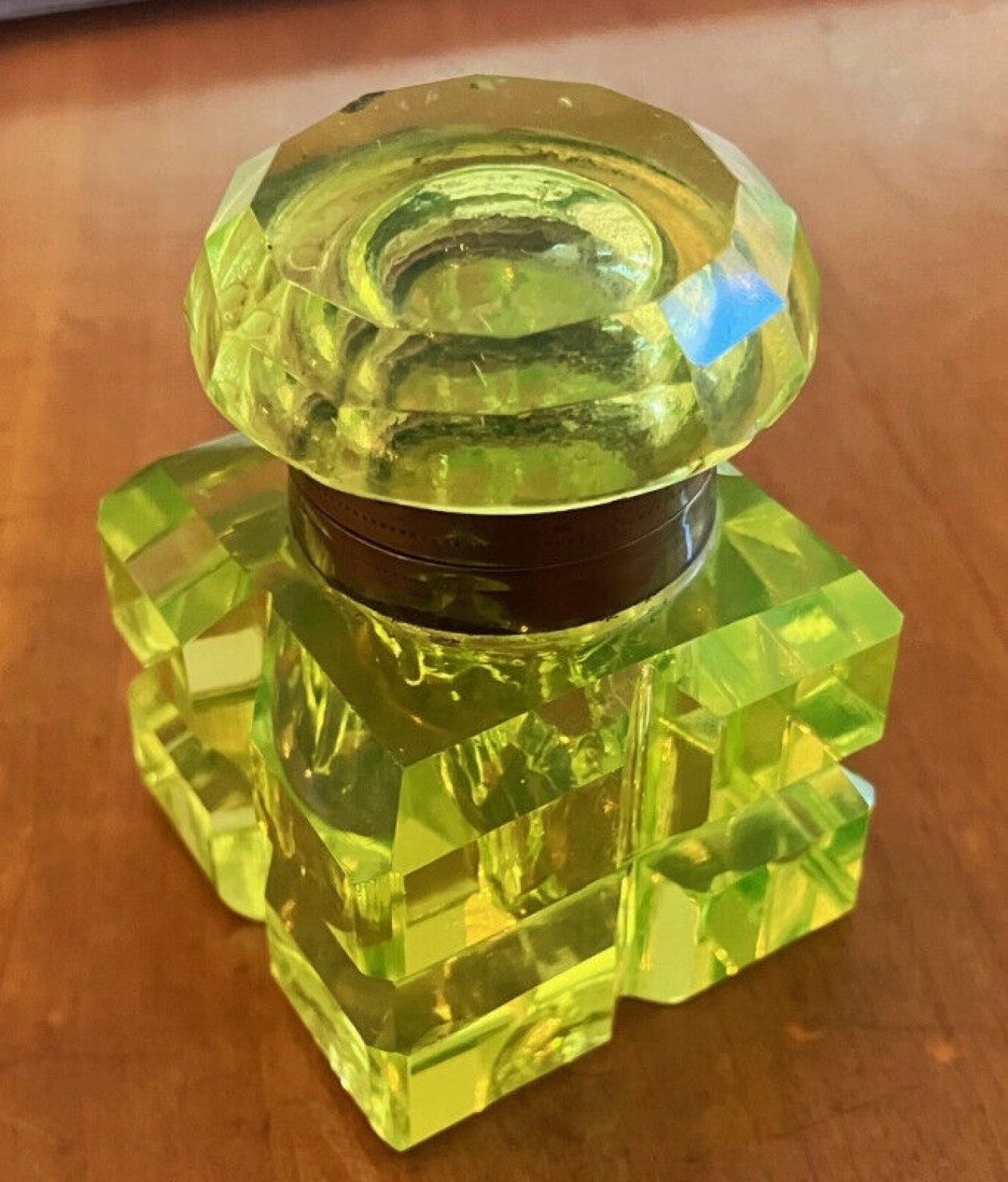 Vaseline Yellow Cut Glass Inkwell