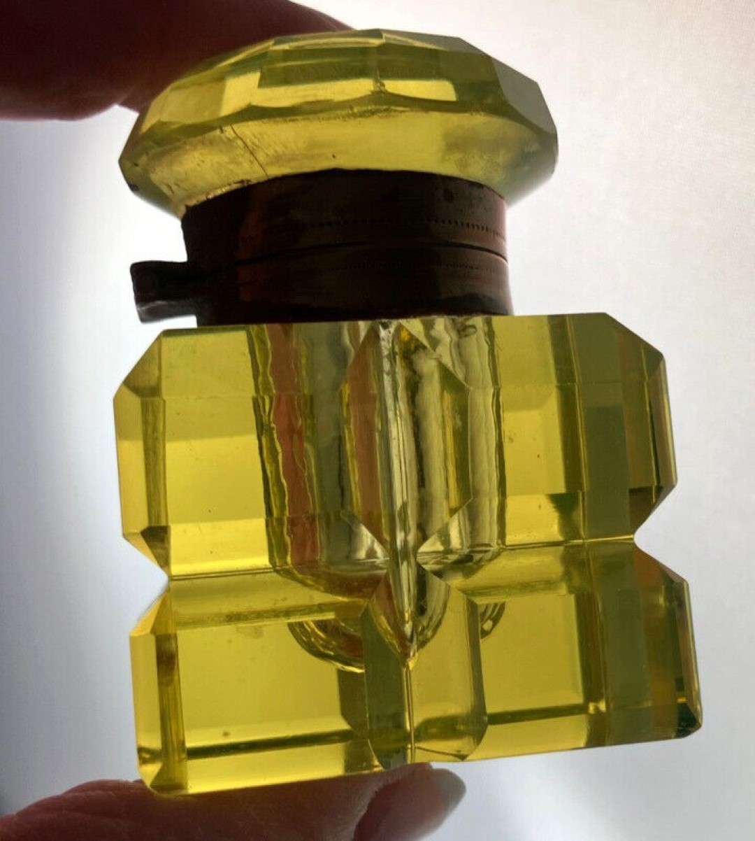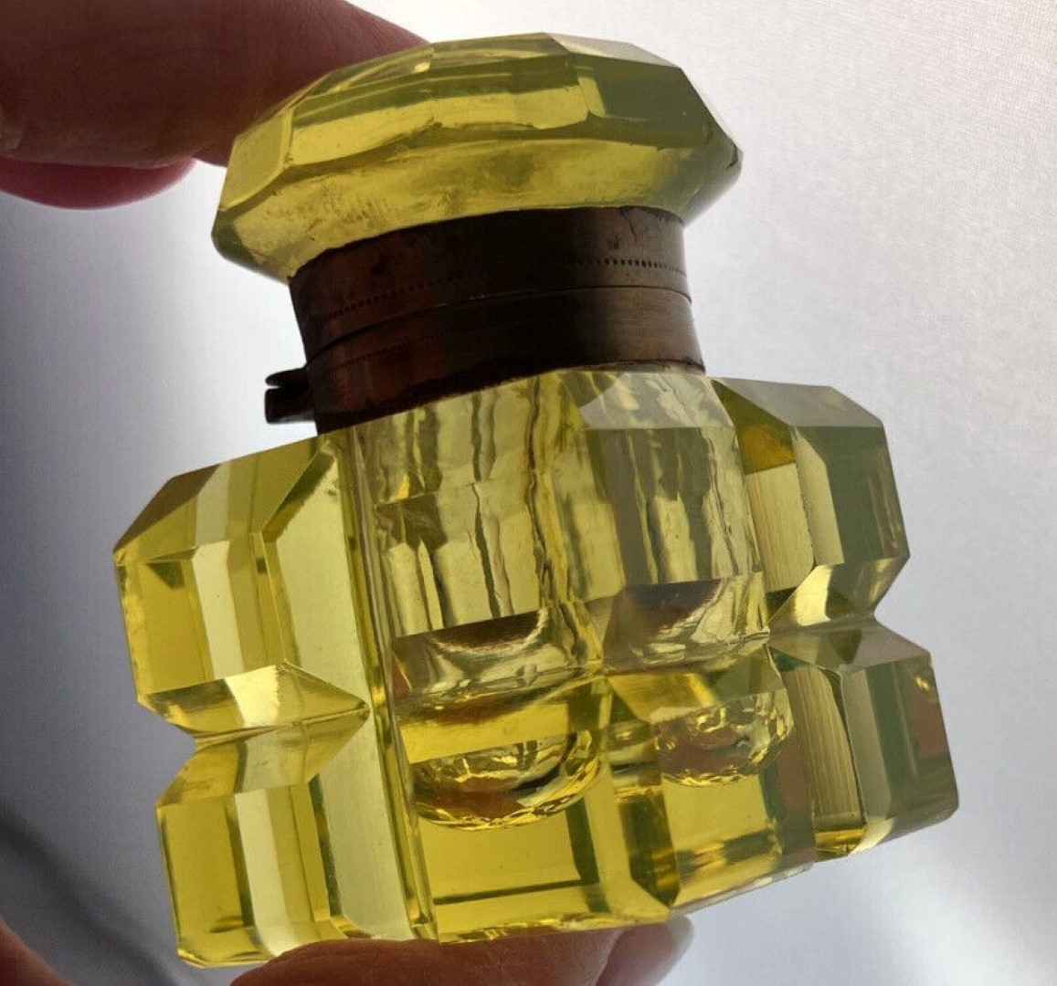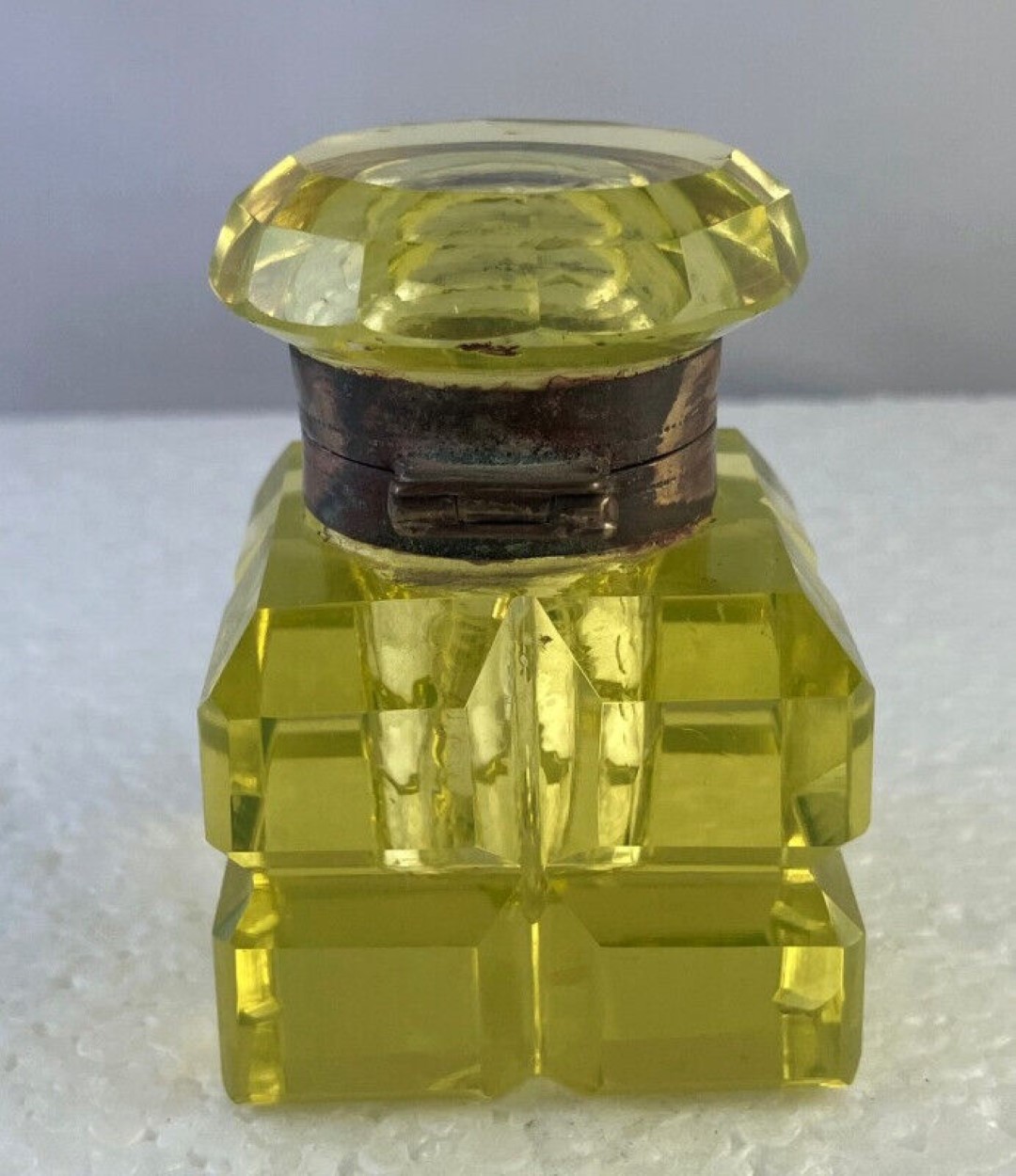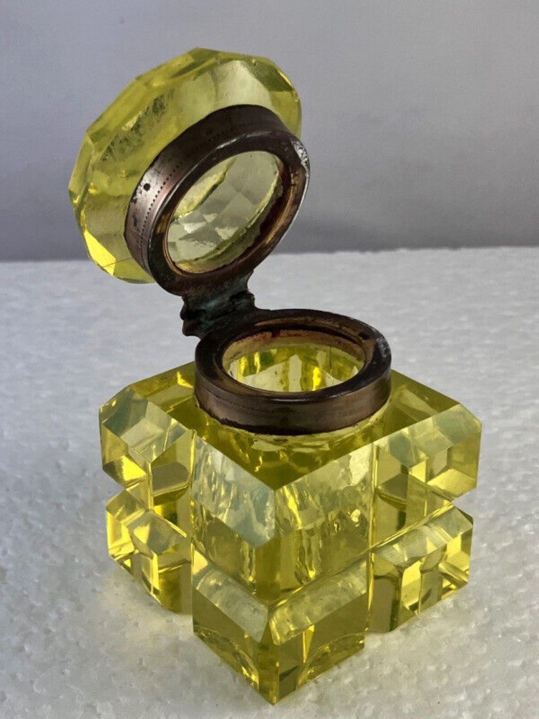 Vaseline Yellow Cut Glass Inkwell