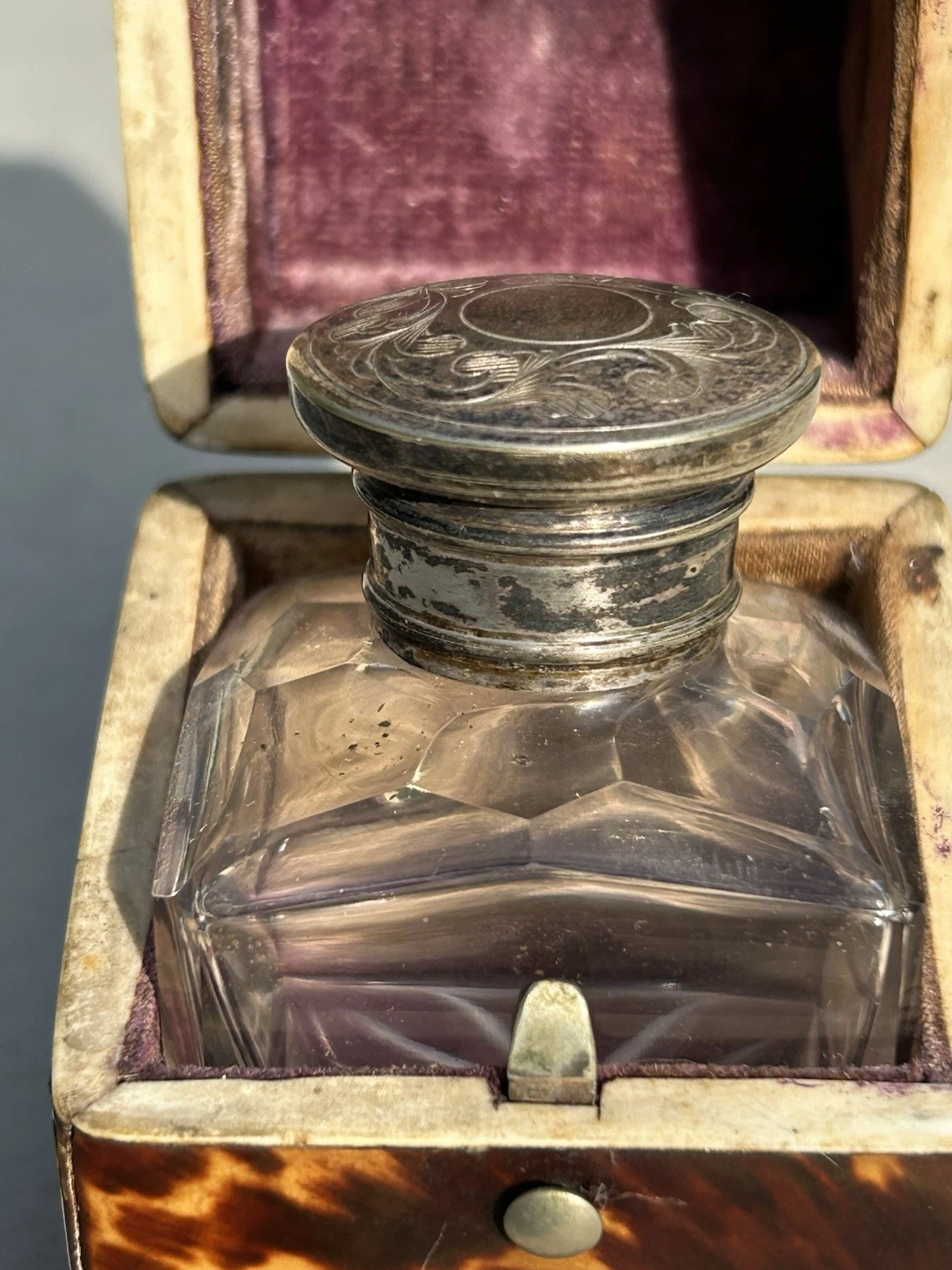 - Aesthetic: The ornate, decorative nature of the silver lid, combined with the detailed cutting of the glass and the elaborate case, are all characteristic of the Victorian love for highly decorative, functional objects.