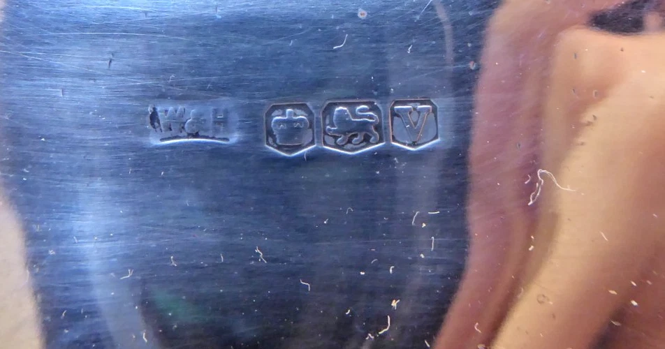 - W&H: The pennant-shaped maker’s mark for Walker & Hall, one of Sheffield’s largest and most prolific silversmiths.