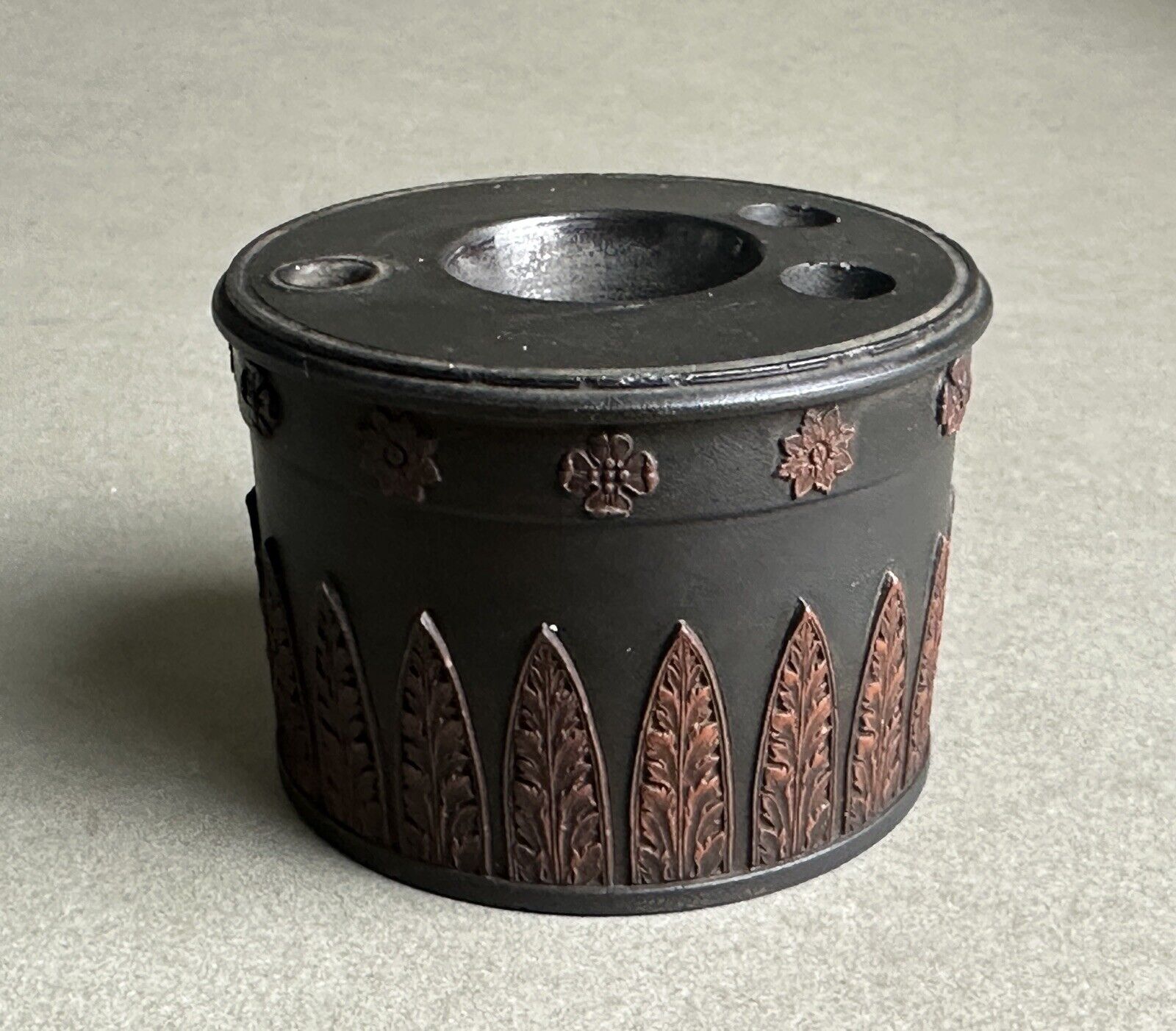 Early 19th century Wedgwood basalt drum-form inkwell.