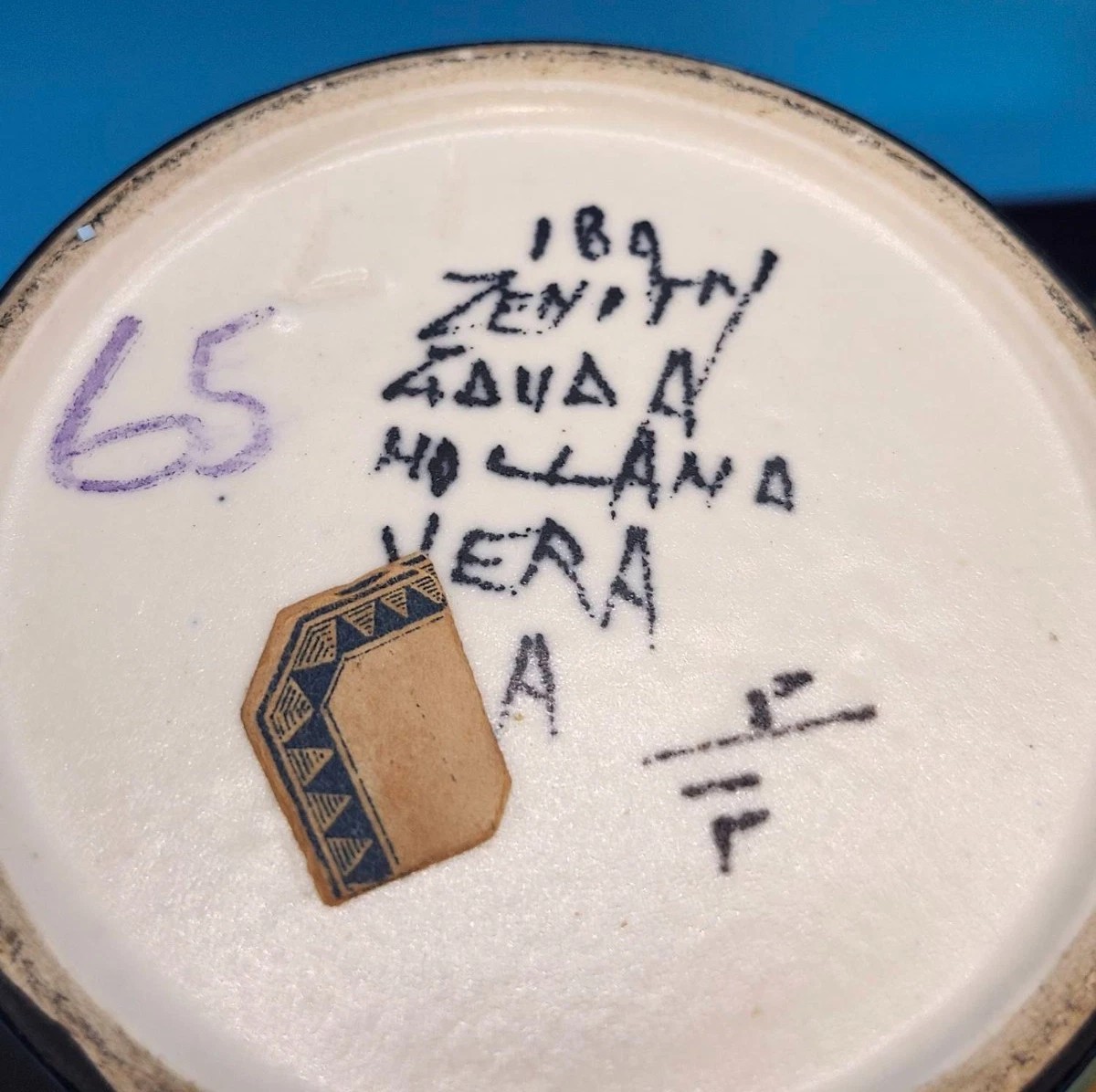 - Pattern (Vera): The decoration is a hand-painted design in the Vera pattern, which dates to the later period of Zenith’s Gouda art pottery production (approximately 1923-1934). It exemplifies a transition from Art Nouveau to the bolder, more simplified forms of Art Deco.